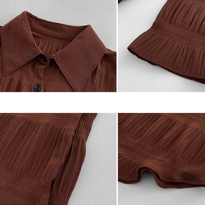 ドレッシーながらベーシックなシャツフォルムなので上品な装いに。