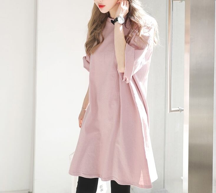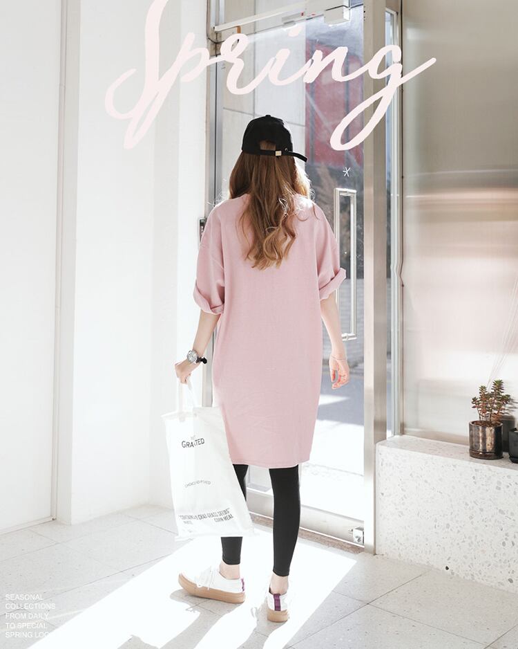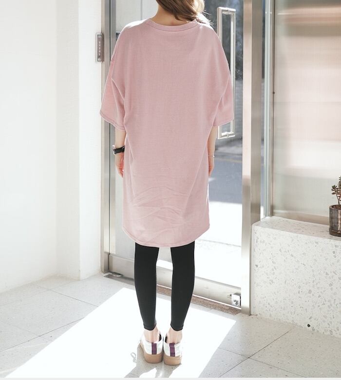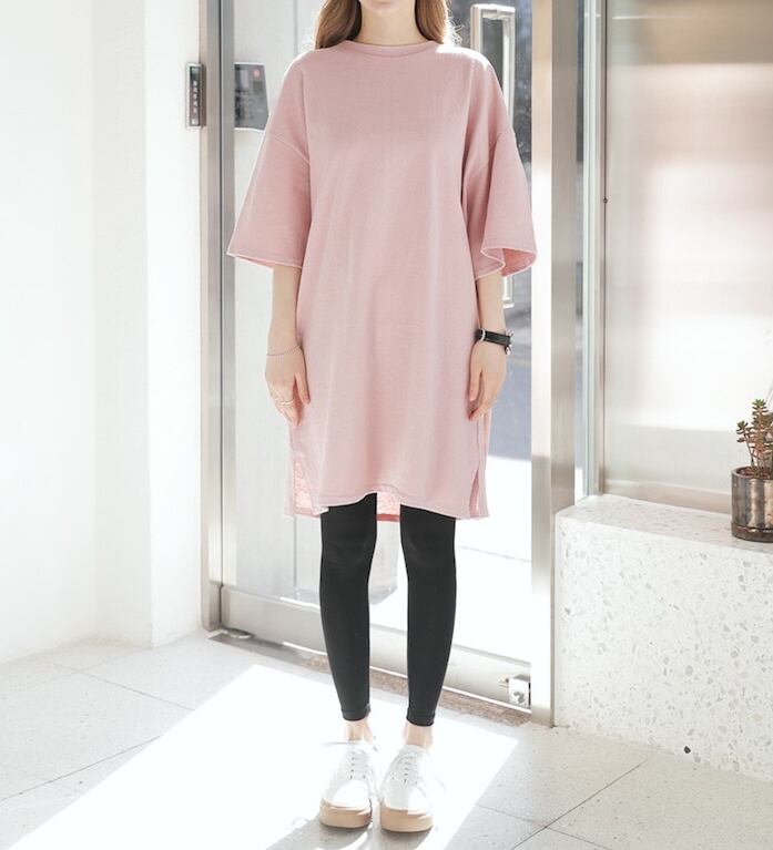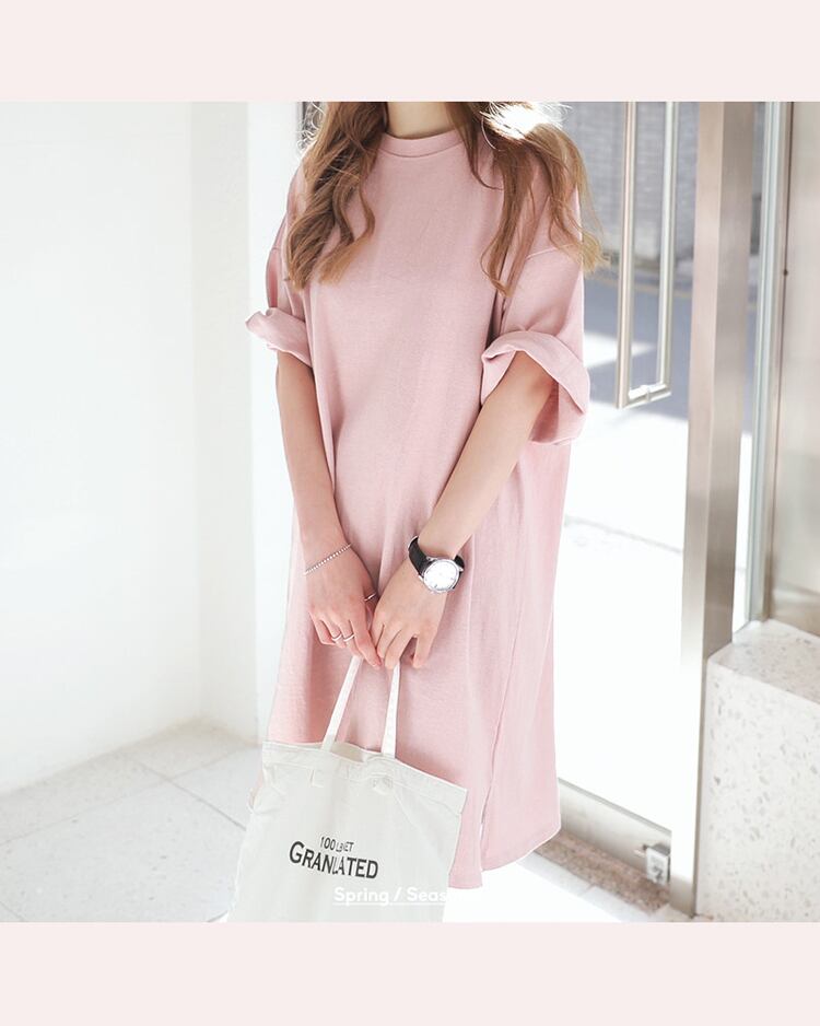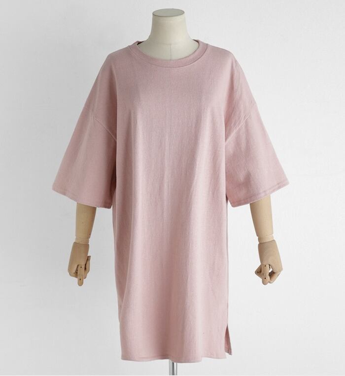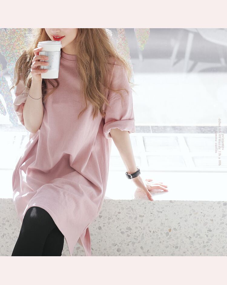 ワンピース レディース Tシャツ ミディアム丈 ルーズ 七分袖 ロールアップ 襟付き クルーネック ゆったり Aライン こなれ感 かわいい 大人可愛い きれいめ シンプル カジュアル 大人 上品 おしゃれ お洒落 かっこいい 大人可愛い 大人女子 こなれ感 ラフ キュート ガーリー ルーズ 無地 春 夏 10代 20代 30代 40代 レディース デート お出かけ 女子会 お泊まり 休日 着回し 普段使い 重ね着 韓国系 コーデ スタイル モテ 体型カバー 脚長 トレンド 流行 ピンク