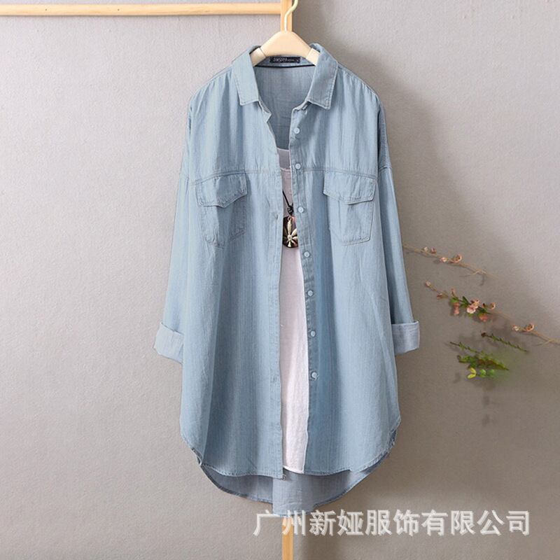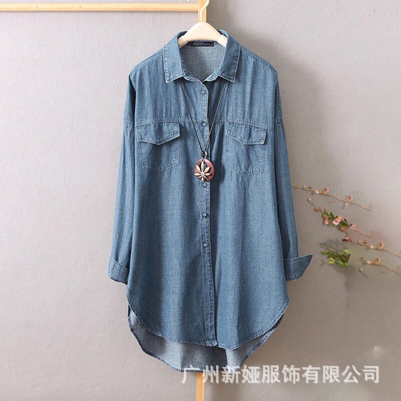 トップス シャツ カットソー 袖あり 長袖 襟付き 綿 ブルーデニム かわいい 大人可愛い シンプル カジュアル 大人 おしゃれ かっこいい 大人可愛い ラフ メンズライク ボーイッシュ クール 無地 春 10代 20代 30代 デート お出かけ 公園デビュー リゾート 海 着回し 普段使い S M L XL 2XL 3XL 4XL 5XL 小さいサイズ 大きいサイズ 大きめ ビッグサイズ 青 ブルー