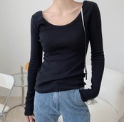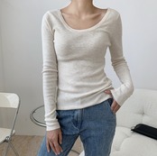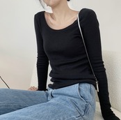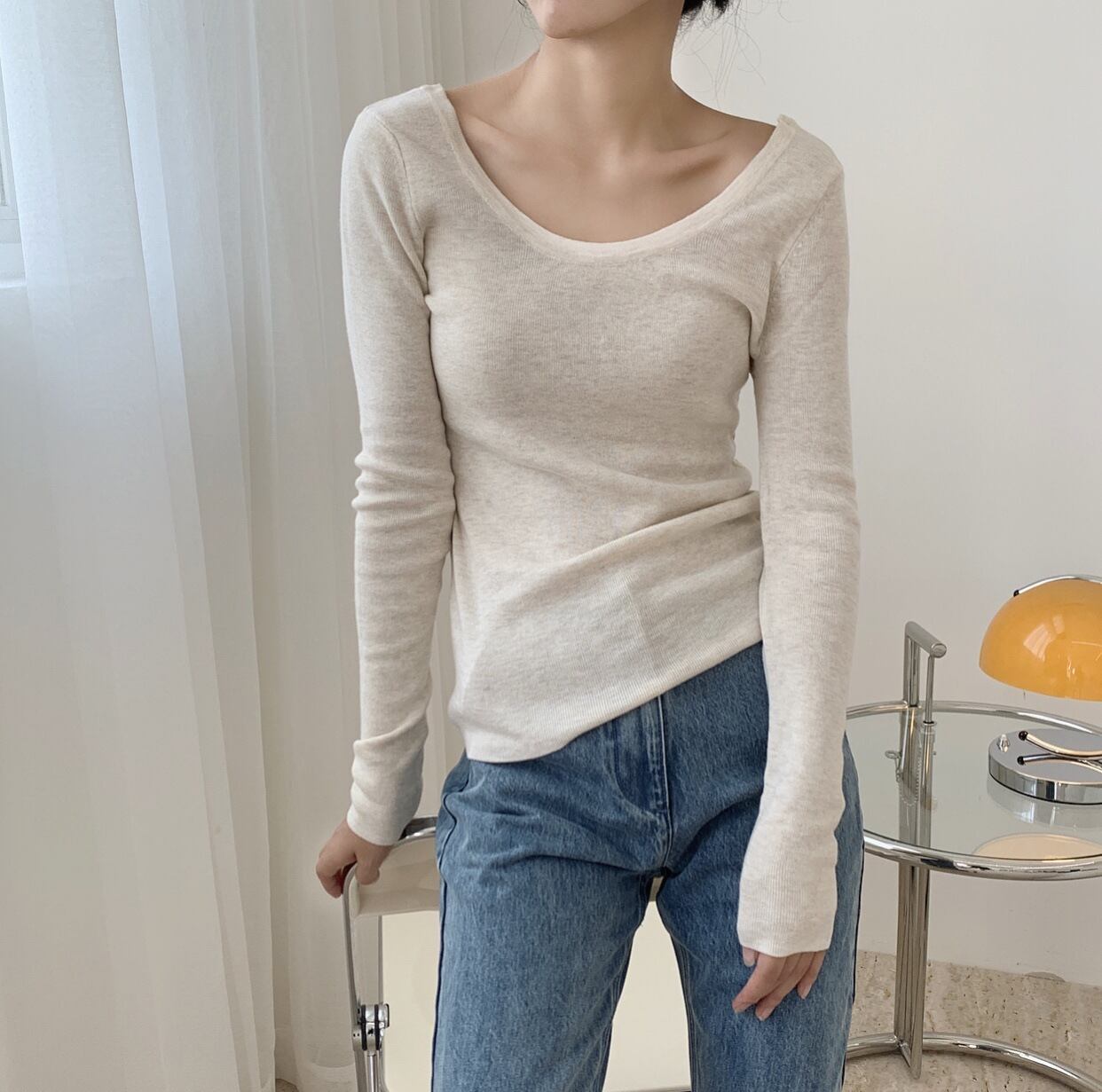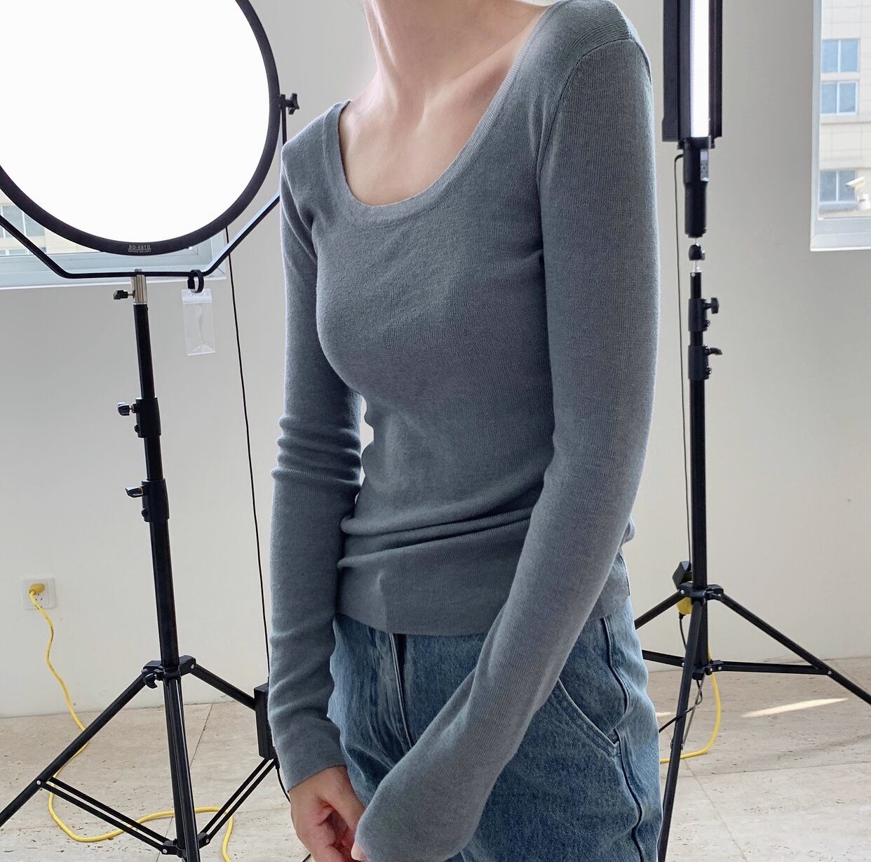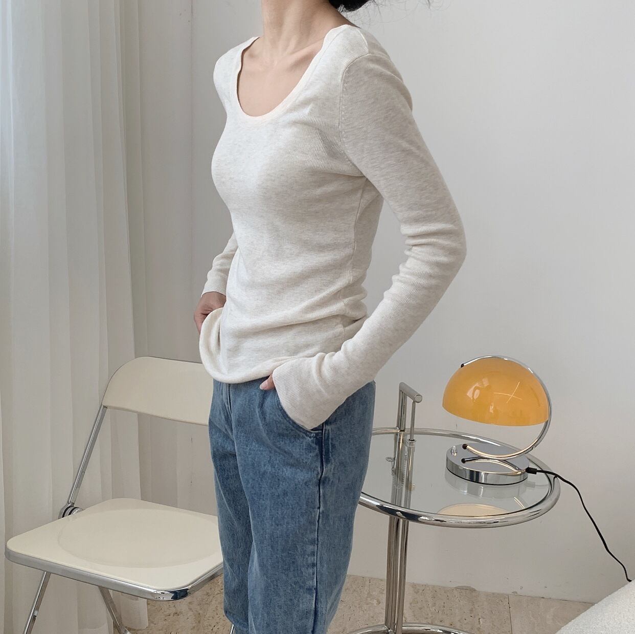 トップス ニットソー 袖あり 長袖 萌袖 Uネック 襟なし タイト 細身 ニット かわいい 大人可愛い きれいめ シンプル 大人 上品 おしゃれ 大人可愛い 大人女子 無地 秋 冬 10代 20代 30代 オフィス ビジネス OL 通勤 デート お出かけ 女子会 韓国系 オルチャン ファッション サイズ フリーサイズ 黒 ブラック ブルー グレー ベージュ くすみカラー 大人カラー