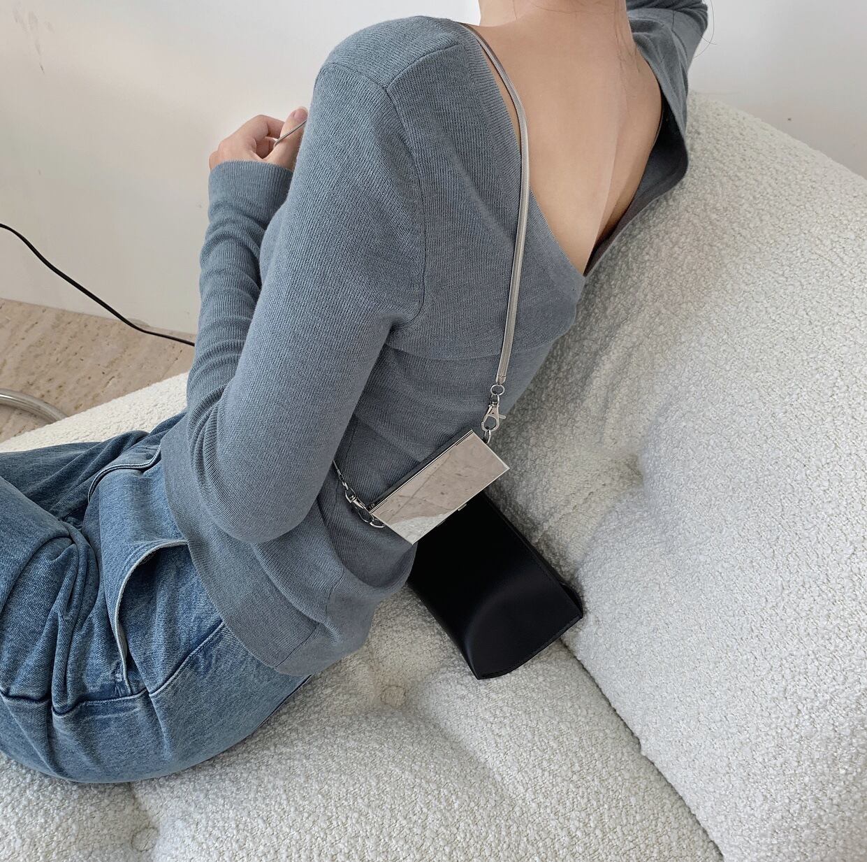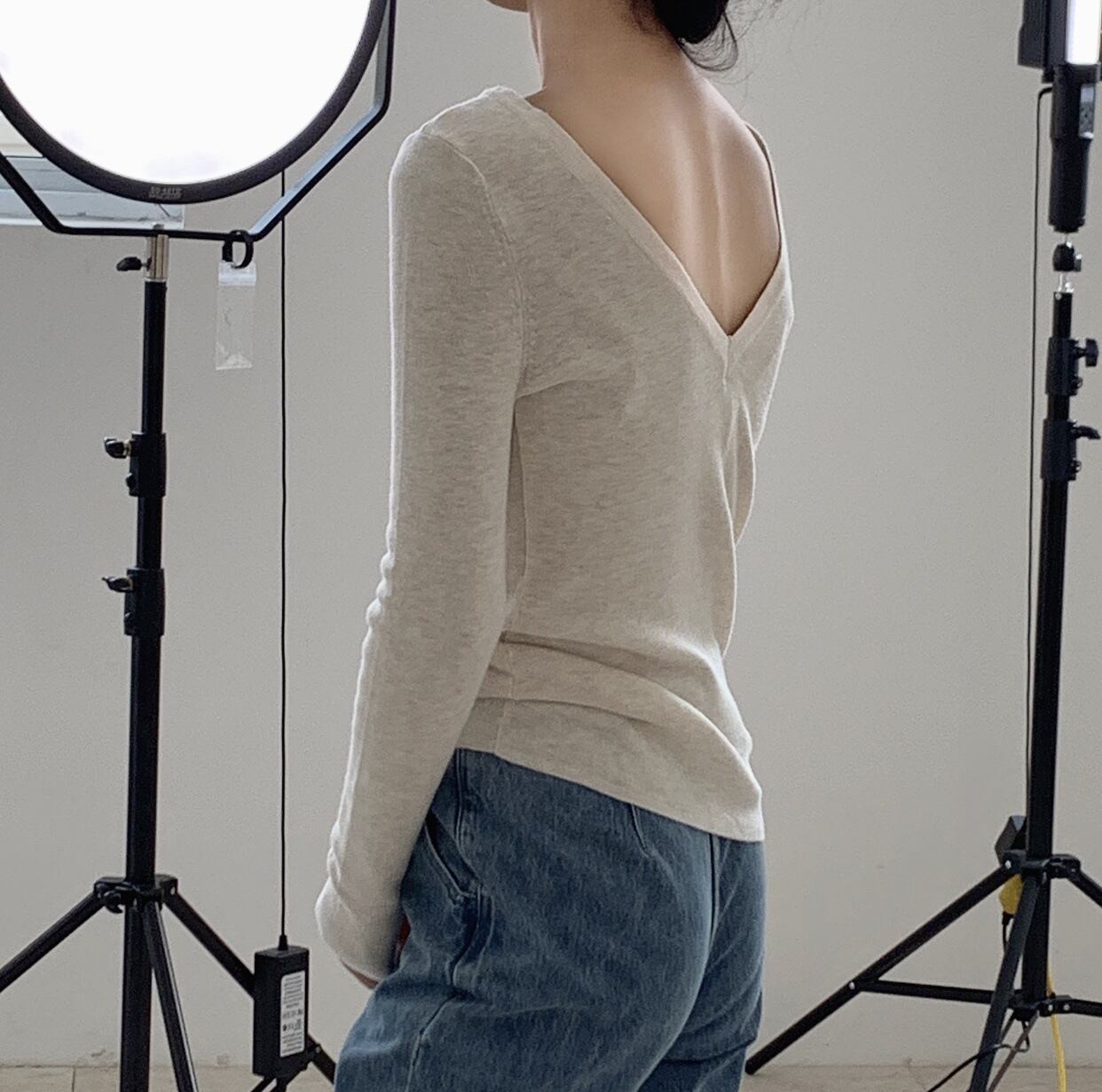 おおきく開いたUネックでデコルテ魅せ・背中はVカットデザインで大人っぽい雰囲気