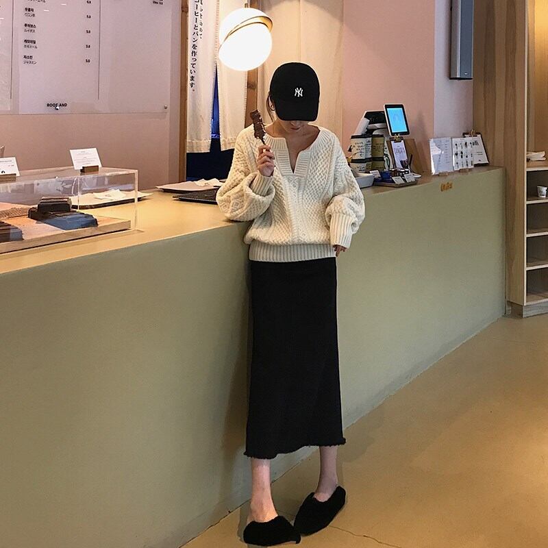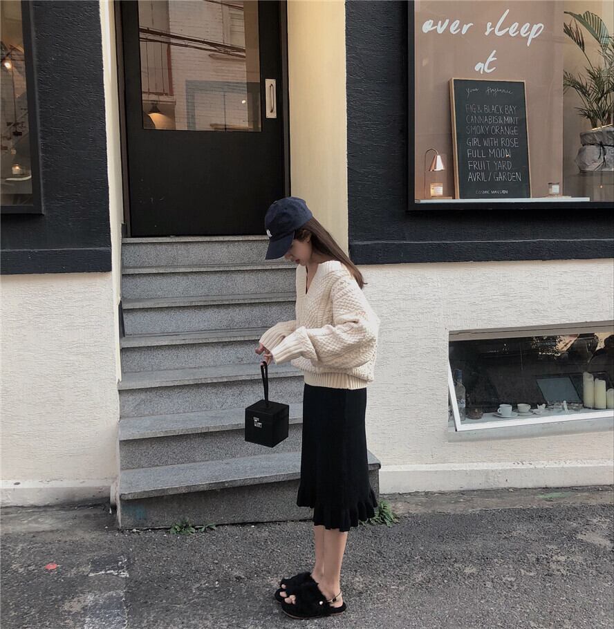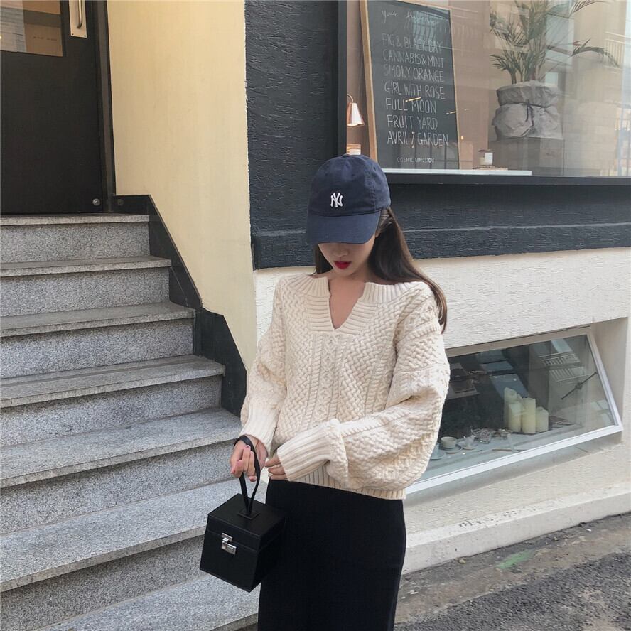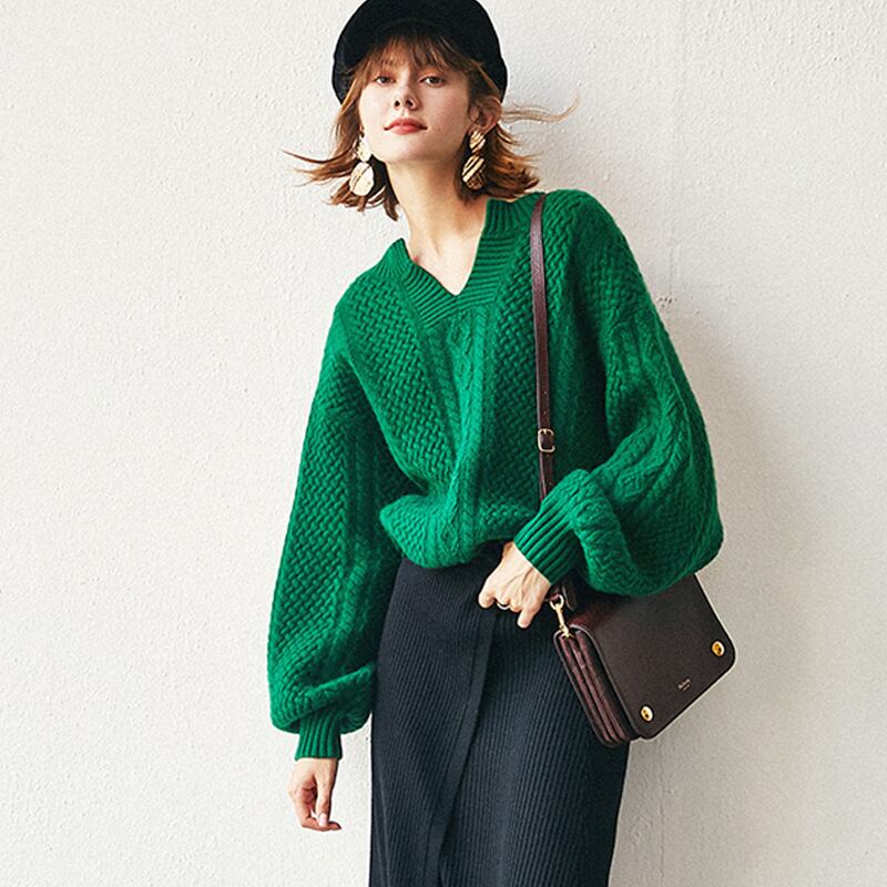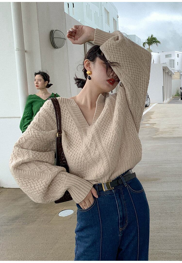 ガーリーでかわいいVネックオーバーサイズセーター◎