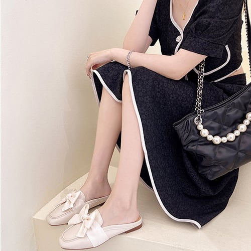 大きなリボンが付いたかわいくておしゃれなミュールです。