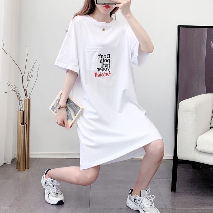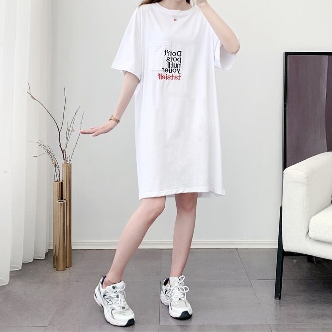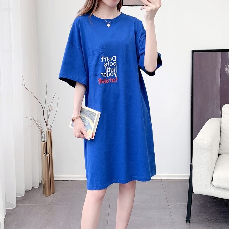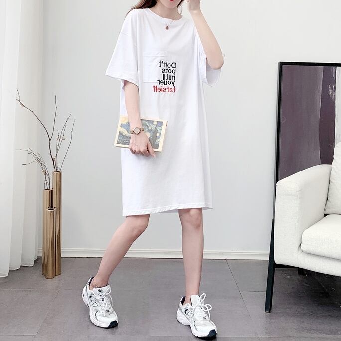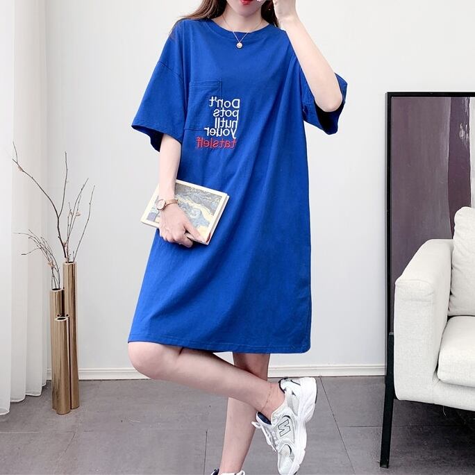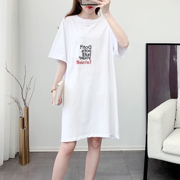トップス Tシャツ カットソー 袖あり 半袖 クルーネック ビッグシルエット ポケット レタリング オーバーサイズ かわいい 大人可愛い きれいめ シンプル カジュアル おしゃれ 無地 春 夏 10代 20代 30代 40代 OL 通勤 学生 通学 女子会 着回し 普段使い ホワイト ブルー