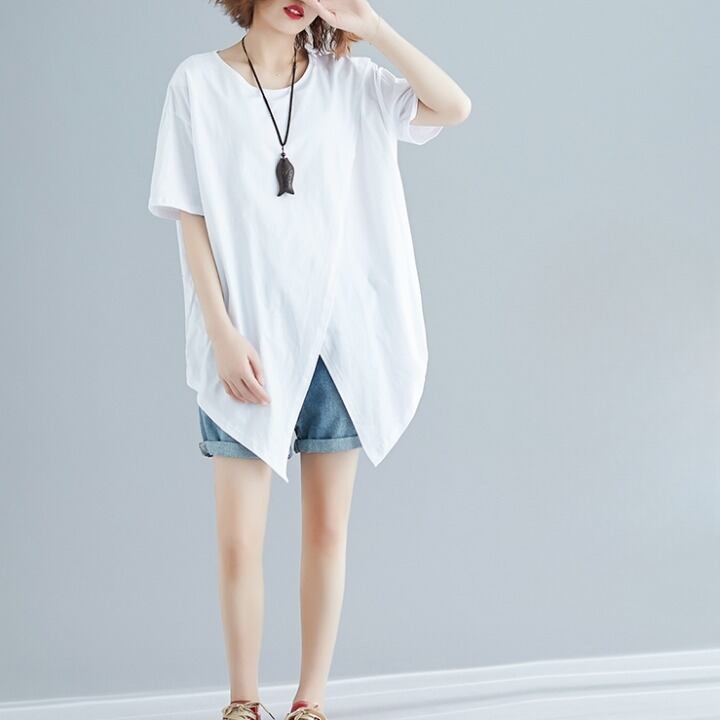 Tシャツ レディース トップス カットソー ルーズ 長袖 スリット ラップ 切り替え アシンメトリー ドロップショルダー クルーネック ゆったり Aライン こなれ感 かわいい 大人可愛い メンズライク きれいめ シンプル カジュアル 大人 上品 おしゃれ お洒落 かっこいい 大人可愛い 大人女子 こなれ感 ラフ キュート ガーリー ルーズ 無地 春 夏 10代 20代 30代 40代 レディース デート お出かけ 女子会 お泊まり 休日 着回し 普段使い 重ね着 スタイル モテ 体型カバー 流行