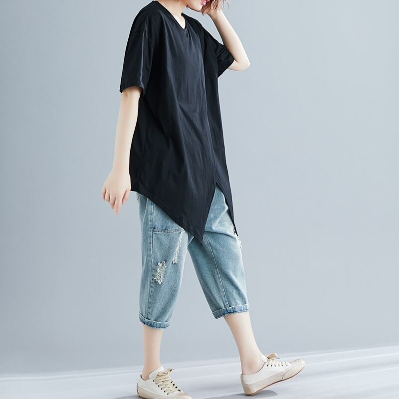 ゆったりドロップショルダーのこなれ感が可愛いアシンメトリーTシャツです。