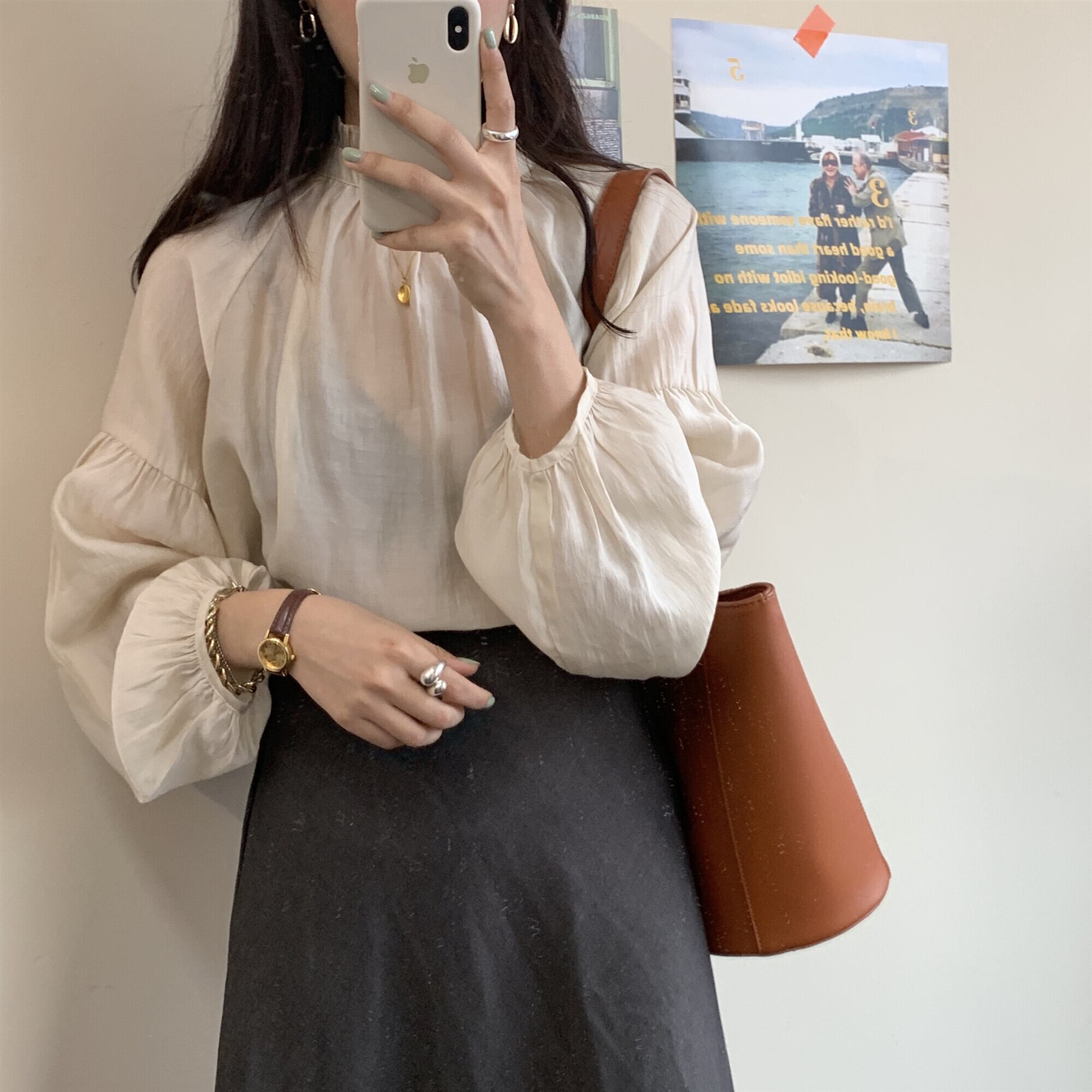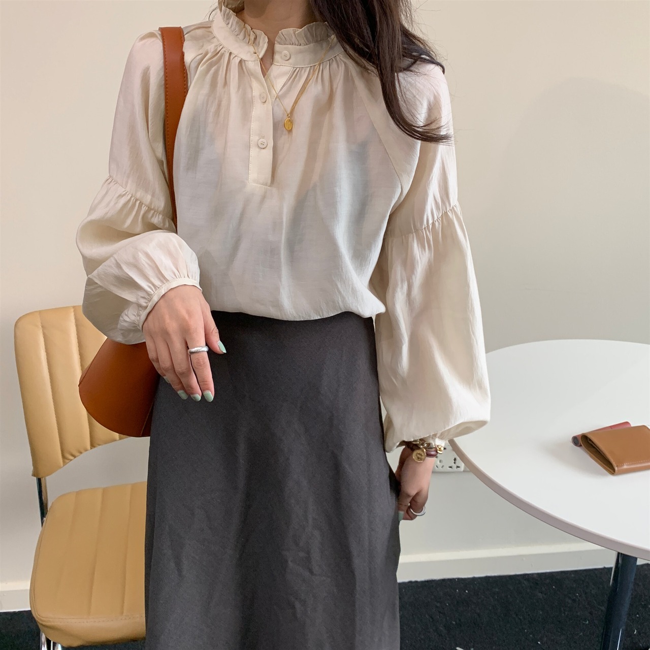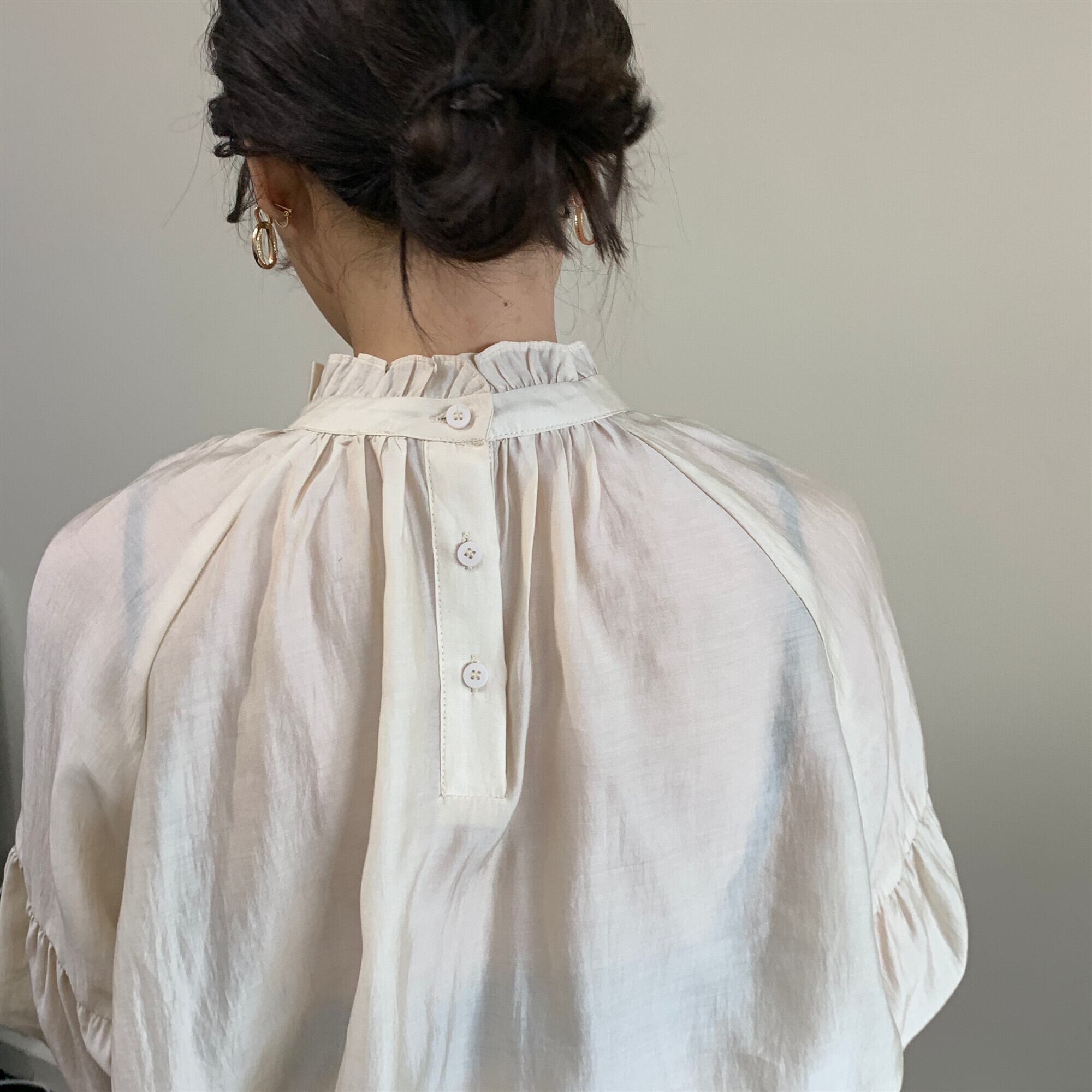 フェミニンなディテールのボリューム袖は高見えするのがうれしい。