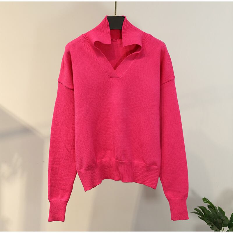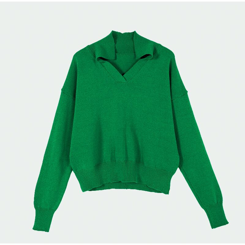 トップス Vネック ニット セーター 襟付き プルオーバー 長袖 ルーズ 古着風 レトロ 人気 おすすめ おしゃれ お洒落 激安 安い 送料無料 プチプラ 可愛い かわいい 韓国 かっこいい カジュアル 大人 上品 きれいめ おしゃれ 大人可愛い 大人女子 モード系 オフィス ビジネス OL 通勤 デート お出かけ 女子会 レディース 女性用 10代 20代 30代 40代 ゆったり ママ 着回し 普段使い 重ね着 オルチャン ファッション 楽ちん モテ グリーン 緑 ピンク ブルー 青 白 ホワイト