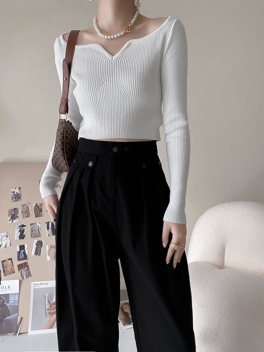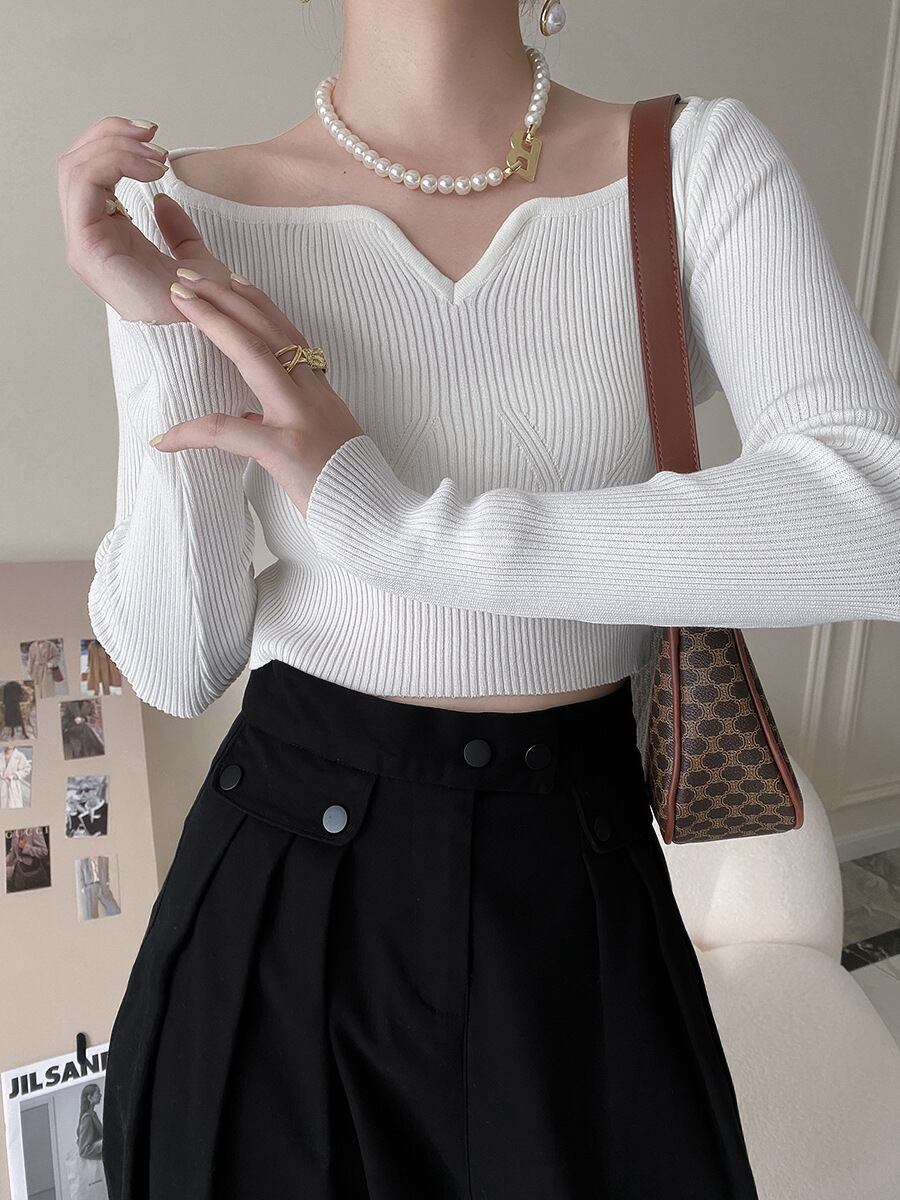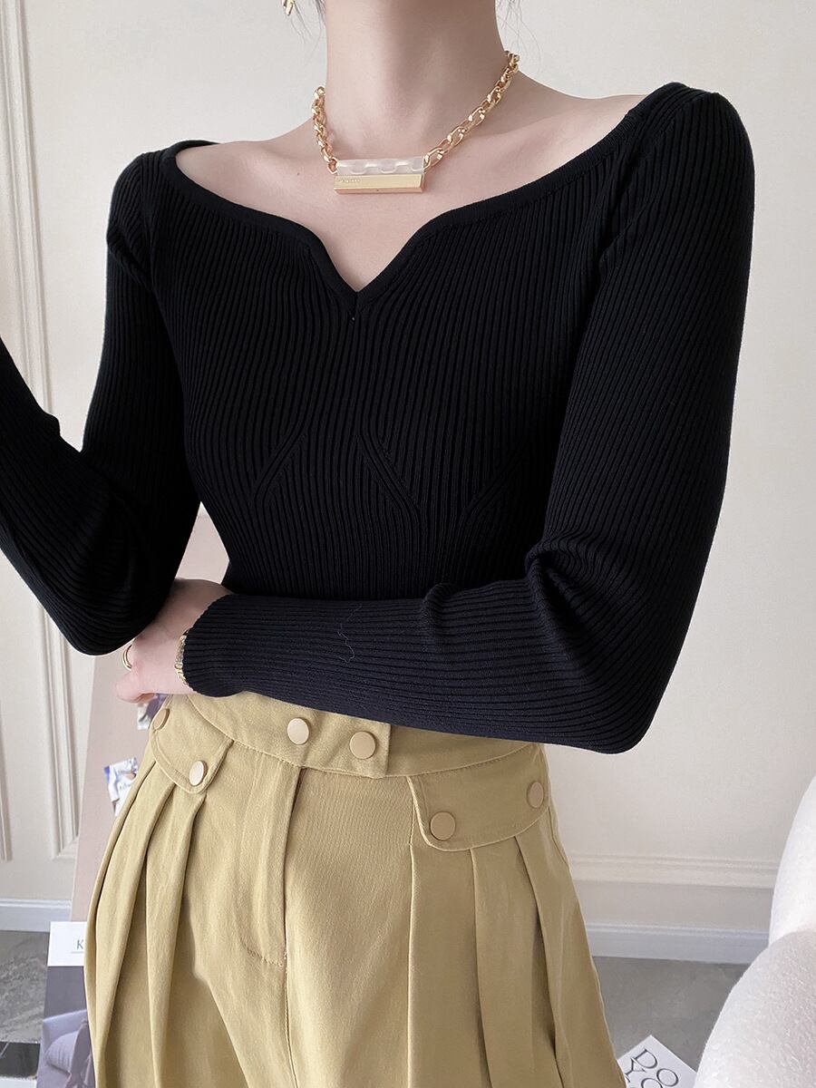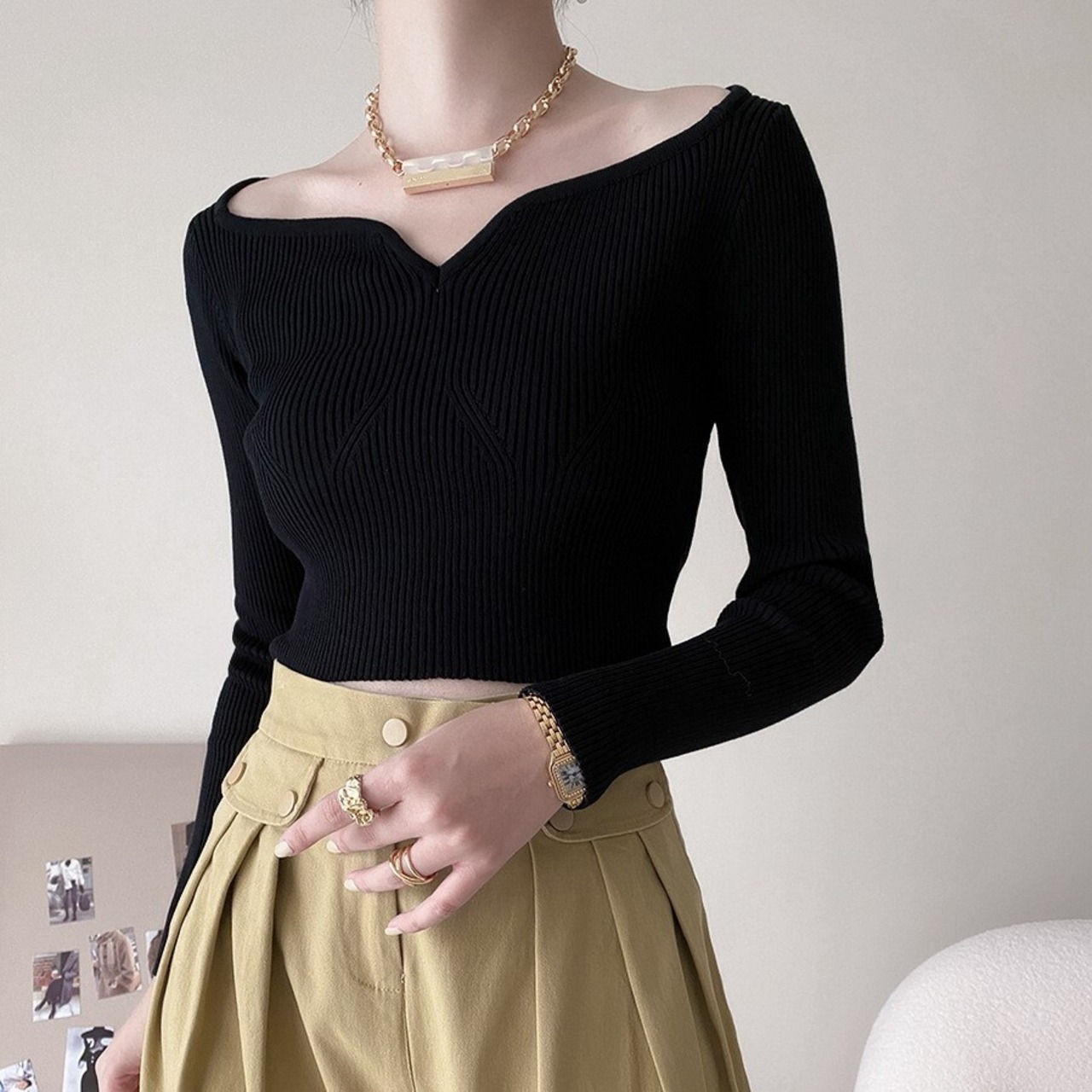 トップス ショート丈 リブニット 長袖 薄手 Vネック スリム フィット セクシー 華奢見え スタイルアップ 人気 おすすめ おしゃれ お洒落 激安 安い 送料無料 プチプラ 可愛い かわいい 韓国 かっこいい カジュアル 大人 上品 きれいめ おしゃれ 大人可愛い 大人女子 モード系 オフィス ビジネス OL 通勤 デート お出かけ 女子会 レディース 女性用 10代 20代 30代 ママ 着回し 普段使い 重ね着 オルチャン ファッション 楽ちん モテ 無地 ブラック 黒 ホワイト 白 モノトーン