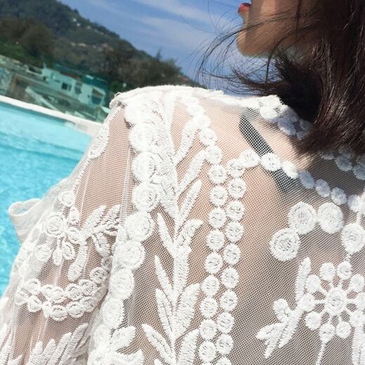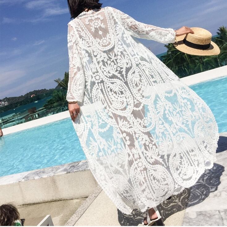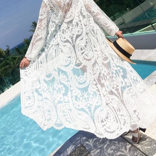 大人カジュアルな総レース仕立てのロングカーディガン。