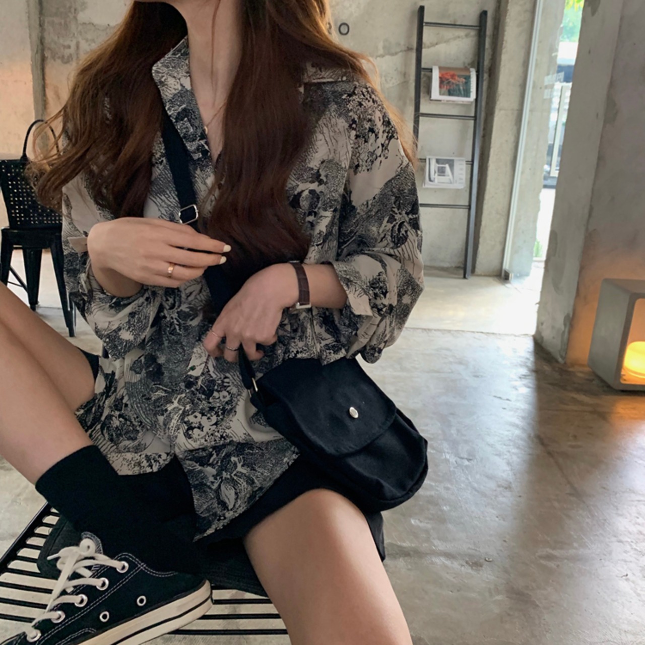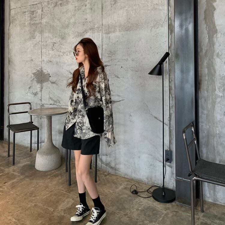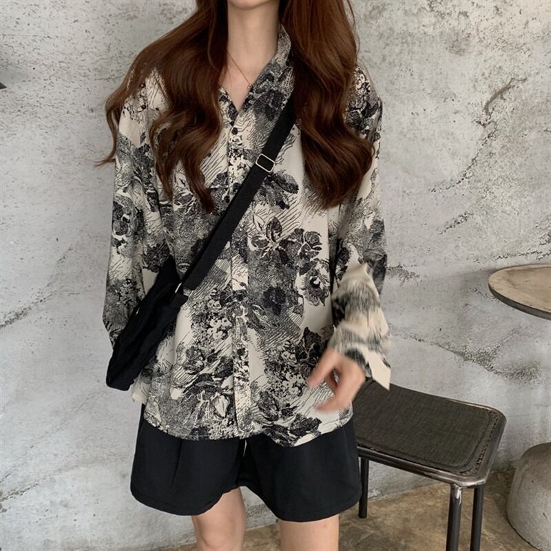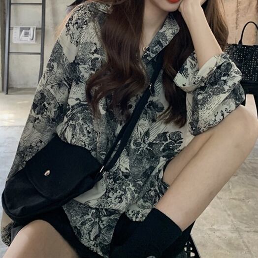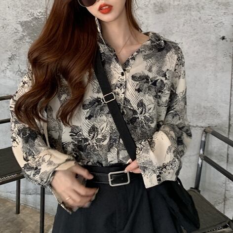 トップス シャツ ブラウス 袖あり 長袖 襟付き 大人可愛い 花柄 水墨画 モード ニュアンスカラー ビッグシルエット オーバーサイズ きれいめ シンプル カジュアル 大人 上品 おしゃれ お洒落 かっこいい レトロ 大人女子 こなれ感 ラフ ルーズ 個性的 クール モード系 セクシー エレガント モダン 主役級 存在感 とろみ感 抜け感 無地 春 秋 冬 入学式 入園式 卒業式 卒園式 10代 20代 30代 40代 50代 女性用 ママ オフィス ビジネス OL 通勤 学生 ブラック