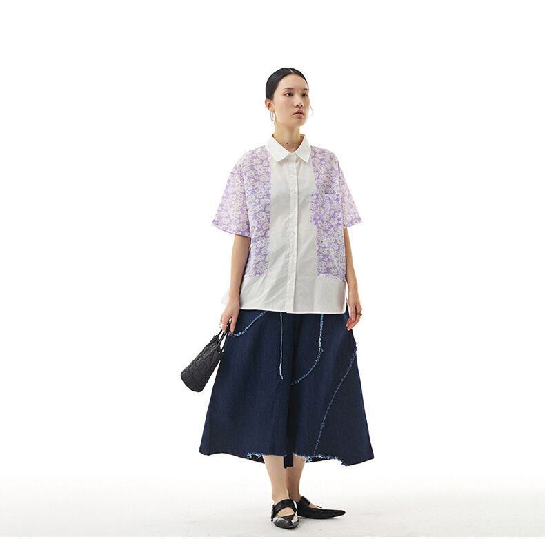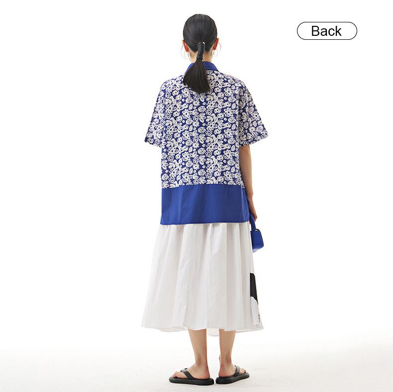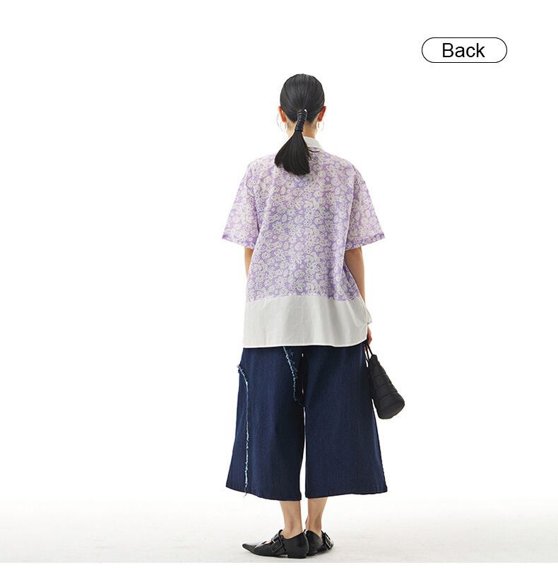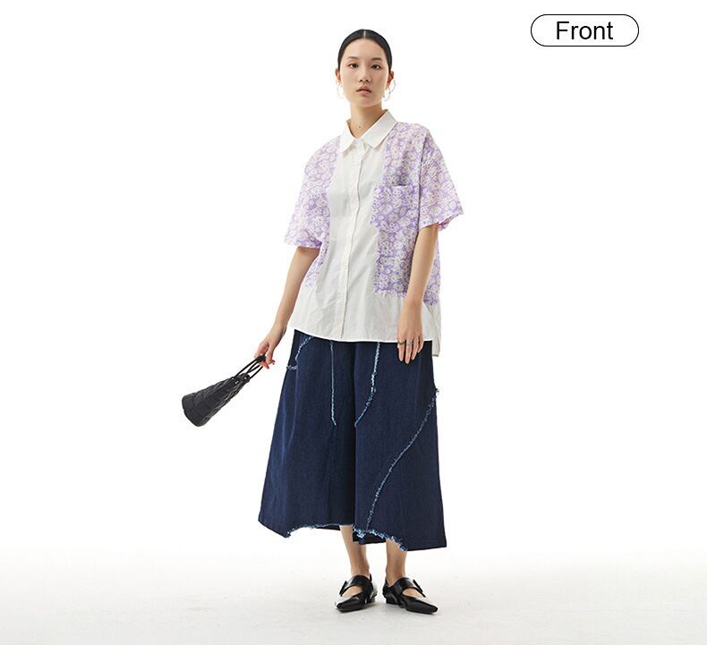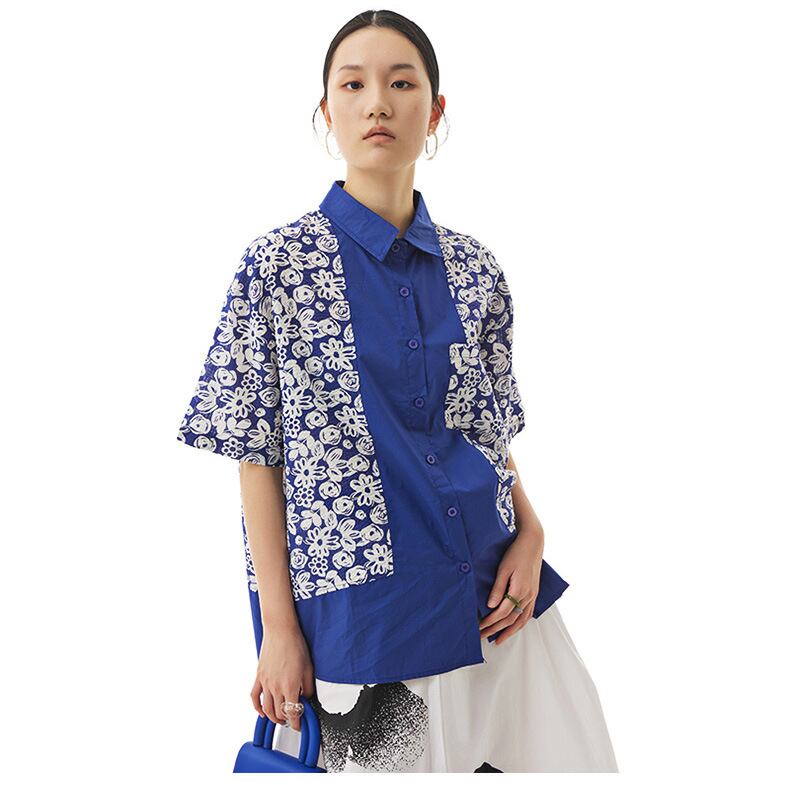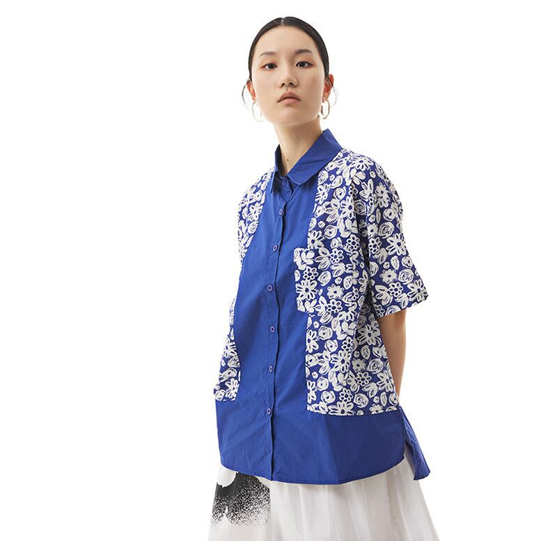トップス シャツ 袖あり 半袖 襟付き 切り替えデザイン ポケット 前開き 綿 大人可愛い カジュアル 大人 おしゃれ アジアン エキゾチック ラフ メンズライク スポーティー 個性的 花柄 小花柄 フラワー プリント 夏 10代 20代 30代 40代 レディース リゾート 海 フリーサイズ ゆったり 青 ブルー 緑 グリーン 紫 パープル