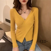 トップス Vネック リブニット カシュクール 肌みせ セクシー スリム 人気 おすすめ おしゃれ お洒落 激安 安い 送料無料 プチプラ 可愛い かわいい 韓国 かっこいい カジュアル 大人 上品 きれいめ おしゃれ 大人可愛い 大人女子 モード系 オフィス ビジネス OL 通勤 デート お出かけ 女子会 レディース 女性用 20代 30代 ママ 着回し 普段使い 重ね着 オルチャン ファッション 楽ちん モテ ホワイト アプリコット ブラック グレー ブラウン イエロー グリーン カーキ パープル