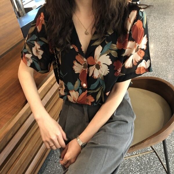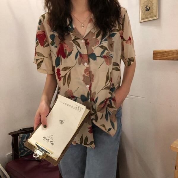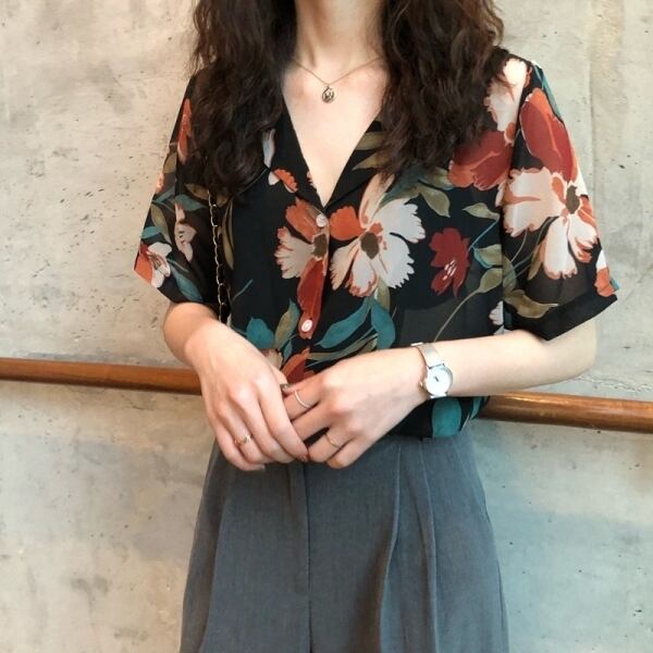 トップス ブラウス シャツ 袖あり 半袖 開襟シャツ 花柄 ヴィンテージ風 ボタニカル フラワー かわいい 大人可愛い きれいめ シンプル カジュアル 上品 おしゃれ レトロ 大人女子 こなれ感 クール セクシー エレガント 抜け感 ドット柄 水玉 ストライプ 春 夏 10代 20代 30代 40代 レディース オフィス OL 通勤 学生 通学 デート お出かけ 女子会 休日 リゾート 旅行 着回し 普段使い 韓国系 オルチャン ファッション コーデ スタイル モテ 体型カバー ワンサイズ