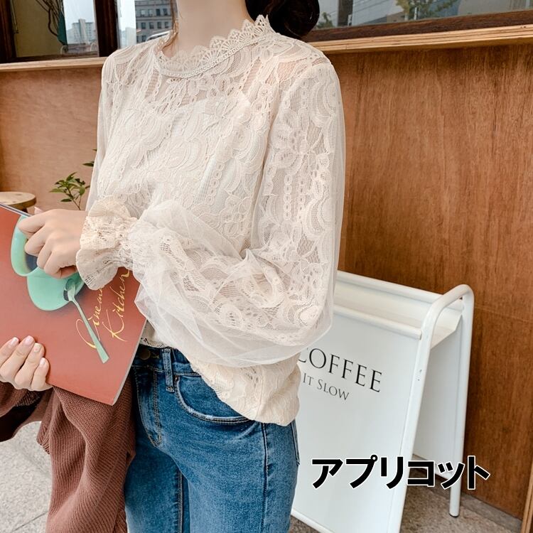 トップス ブラウス レディース カットソー 袖あり 長袖 ハイネック 総レース チュール 花柄 切り替え 花柄 シアー シースルー 透け感 かわいい 大人可愛い シンプル カジュアル 大人 おしゃれ 大人女子 こなれ感 キュート 柄 春 夏 10代 20代 30代 オフィス ビジネス OL 通勤 デート お出かけ 普段使い S M L XL 2XL ホワイト アプリコット