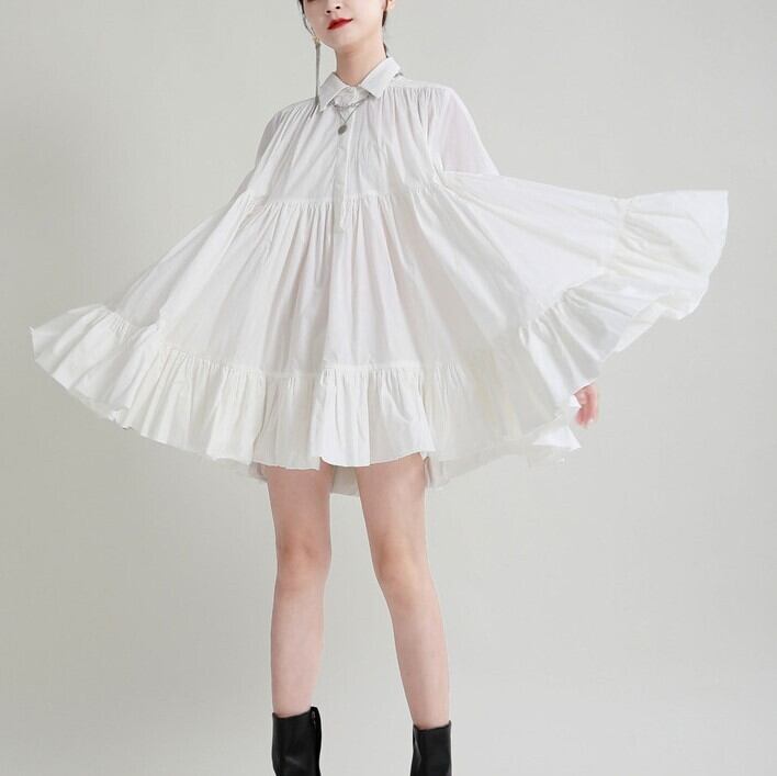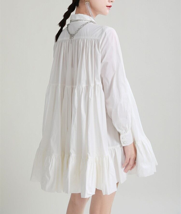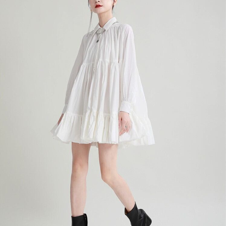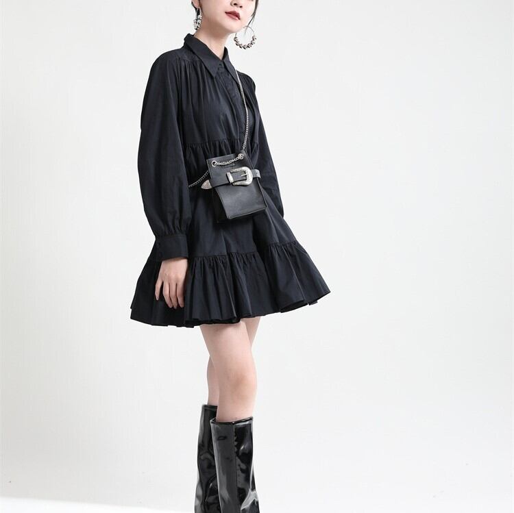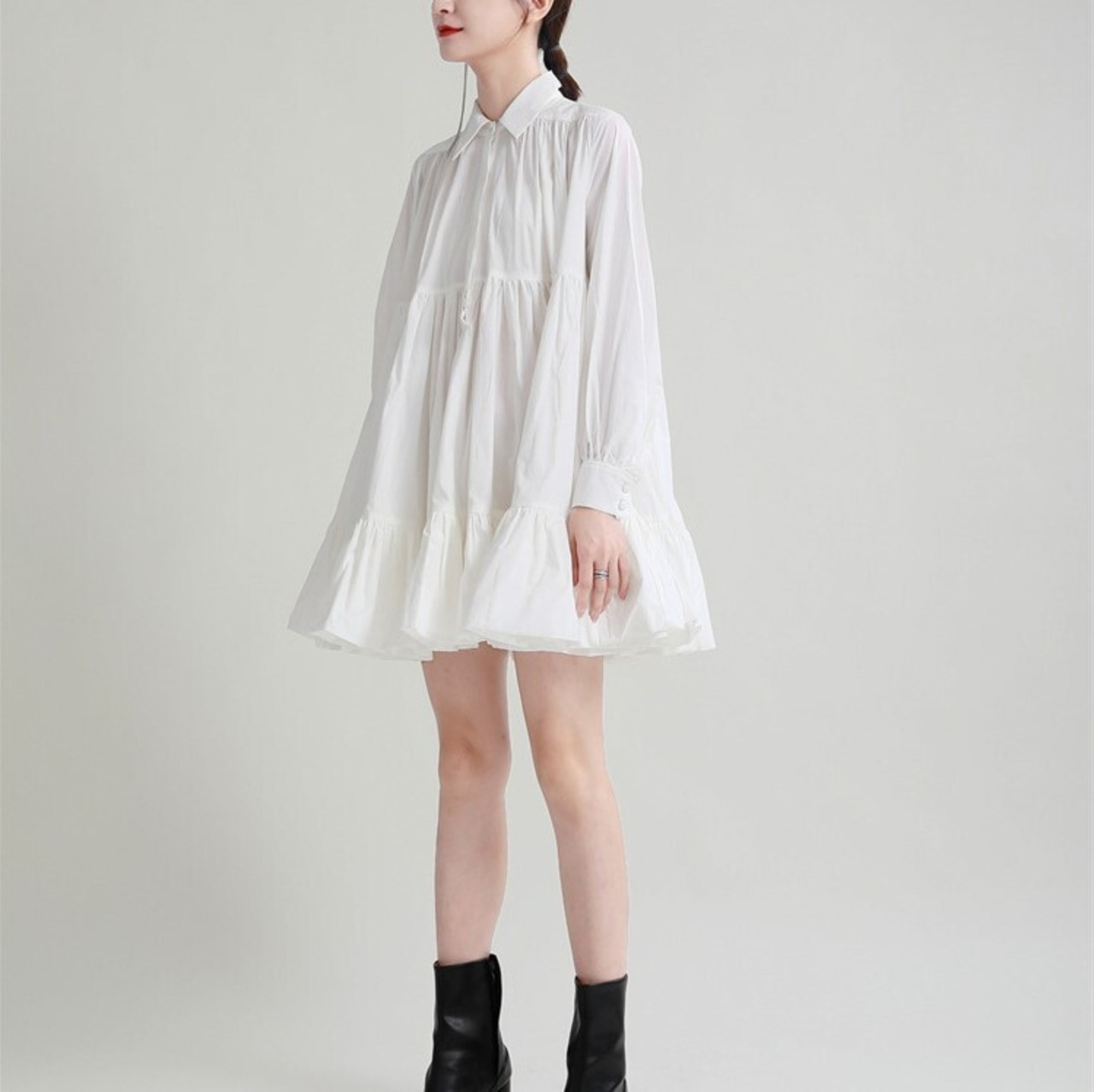 ワンピース トップス シャツワンピ フリル Aライン フェミニン フレア 長袖 襟付き 人気 おすすめ おしゃれ お洒落 激安 安い 送料無料 プチプラ 可愛い かわいい 韓国 かっこいい カジュアル 大人 上品 きれいめ おしゃれ 大人可愛い 大人女子 モード系 ミニワンピ ティアード ロリータ デート レトロ お出かけ 女子会 レディース 女性用 20代 30代 ママ 着回し 普段使い 重ね着 オルチャン ファッション 楽ちん モテ ブラック ホワイト 白 黒 無地 モノトーン