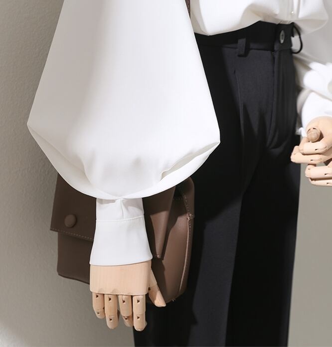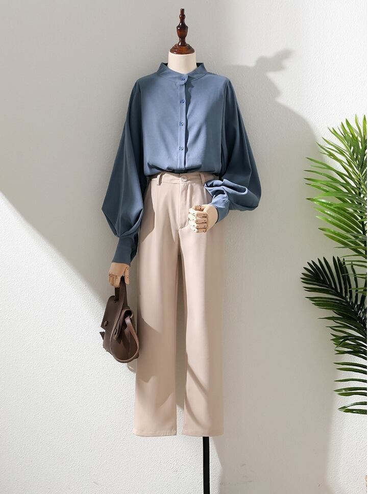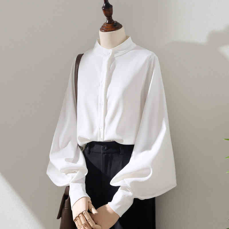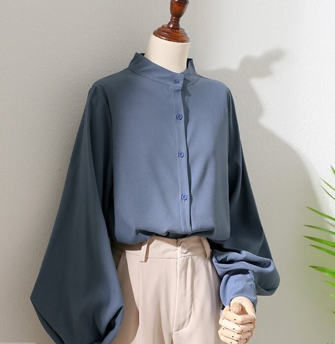 トップス ボリュームスリーブ ブラウス スタンドカラー 長袖 ボリューム袖 クラシカル シフォン おすすめ おしゃれ お洒落 激安 安い 送料無料 プチプラ 可愛い かわいい 韓国 かっこいい カジュアル 大人 上品 きれいめ おしゃれ 大人可愛い 大人女子 モード系 オフィス ビジネス OL 通勤 デート お出かけ 女子会 レディース 女性用 20代 30代 ママ 着回し 普段使い 重ね着 オルチャン ファッション モテ ホワイト ブルー カーキ ブラック
