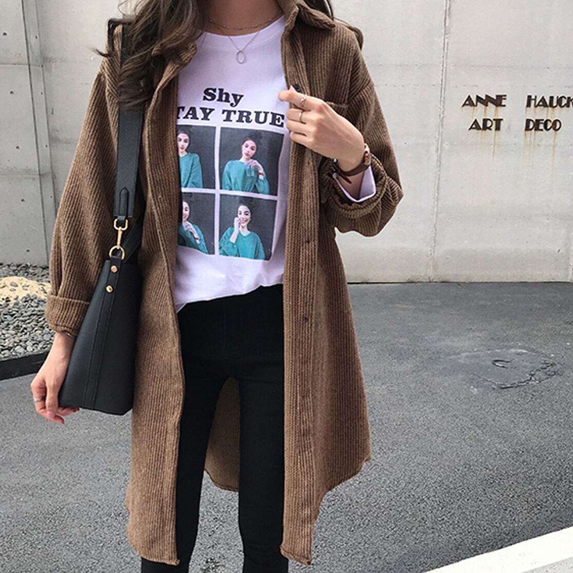 アウター ジャケット シャツ トップス ミディアム丈 袖あり 長袖 ポケット付き 大人可愛い きれいめ シンプル コーデュロイ カジュアル おしゃれ レトロ こなれ感 ラフ エレガント 無地 春 秋 冬 10代 20代 30代 40代 レディース オフィス OL 通勤 学生 通学 デート お出かけ 女子会 リゾート 旅行 着回し 普段使い 韓国系 オルチャン ファッション コーデ スタイル モテ 体型カバー S M L XL 白 カーキ グレー