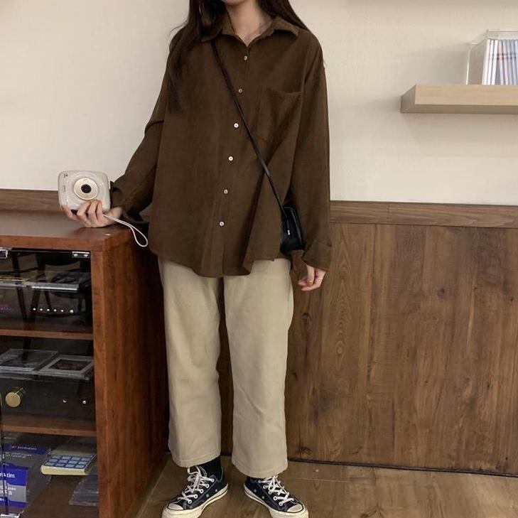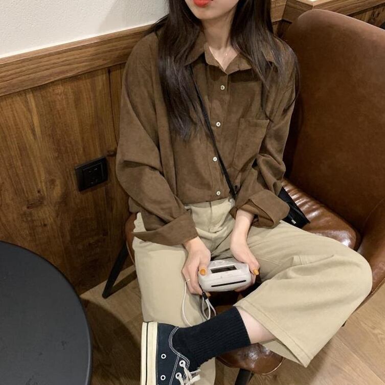 シャツ トップス ジャケット ミディアム丈 袖あり 長袖 ポケット付き 大人可愛い きれいめ シンプル コーデュロイ カジュアル おしゃれ レトロ こなれ感 ラフ エレガント 無地 春 秋 冬 10代 20代 30代 40代 レディース オフィス OL 通勤 学生 通学 デート お出かけ 女子会 リゾート 旅行 着回し 普段使い 韓国系 オルチャン ファッション コーデ スタイル モテ 体型カバー S M L XL 白 ブラウン グレー イエロー