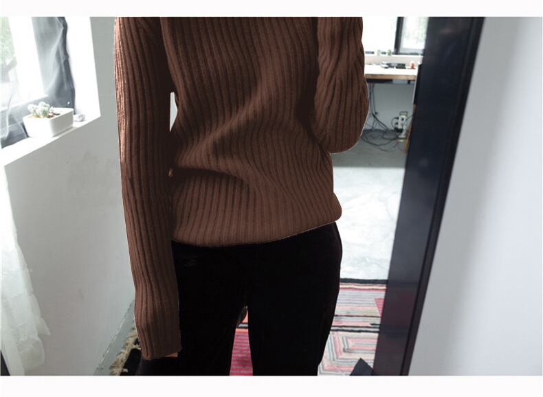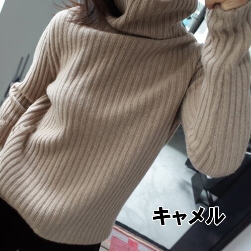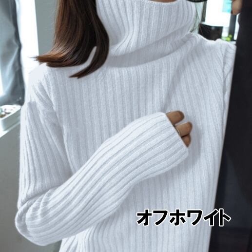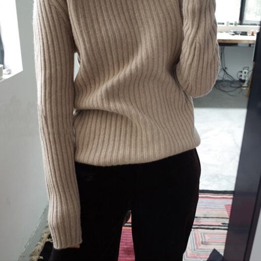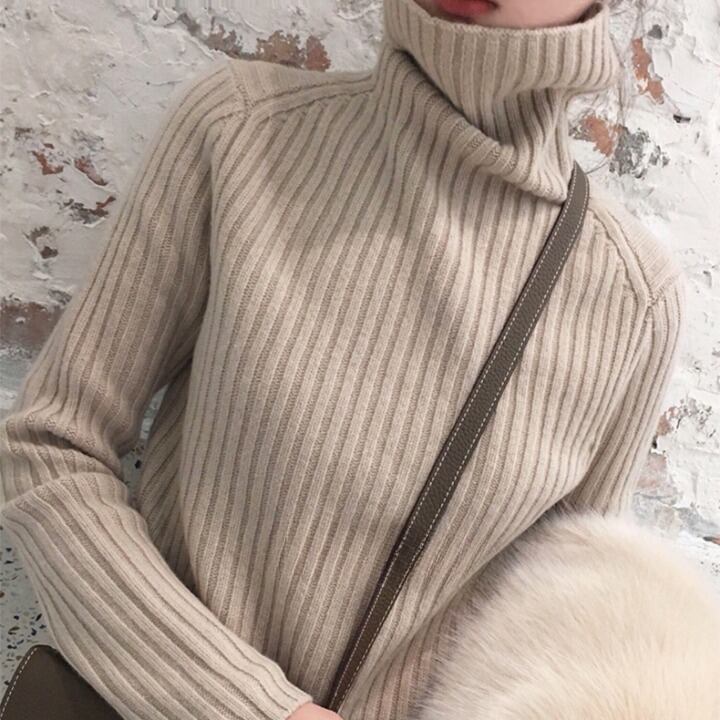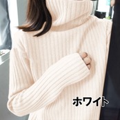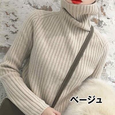 滑らかな肌触りと仕立てがリブ入りのシンプルタートルニットです。