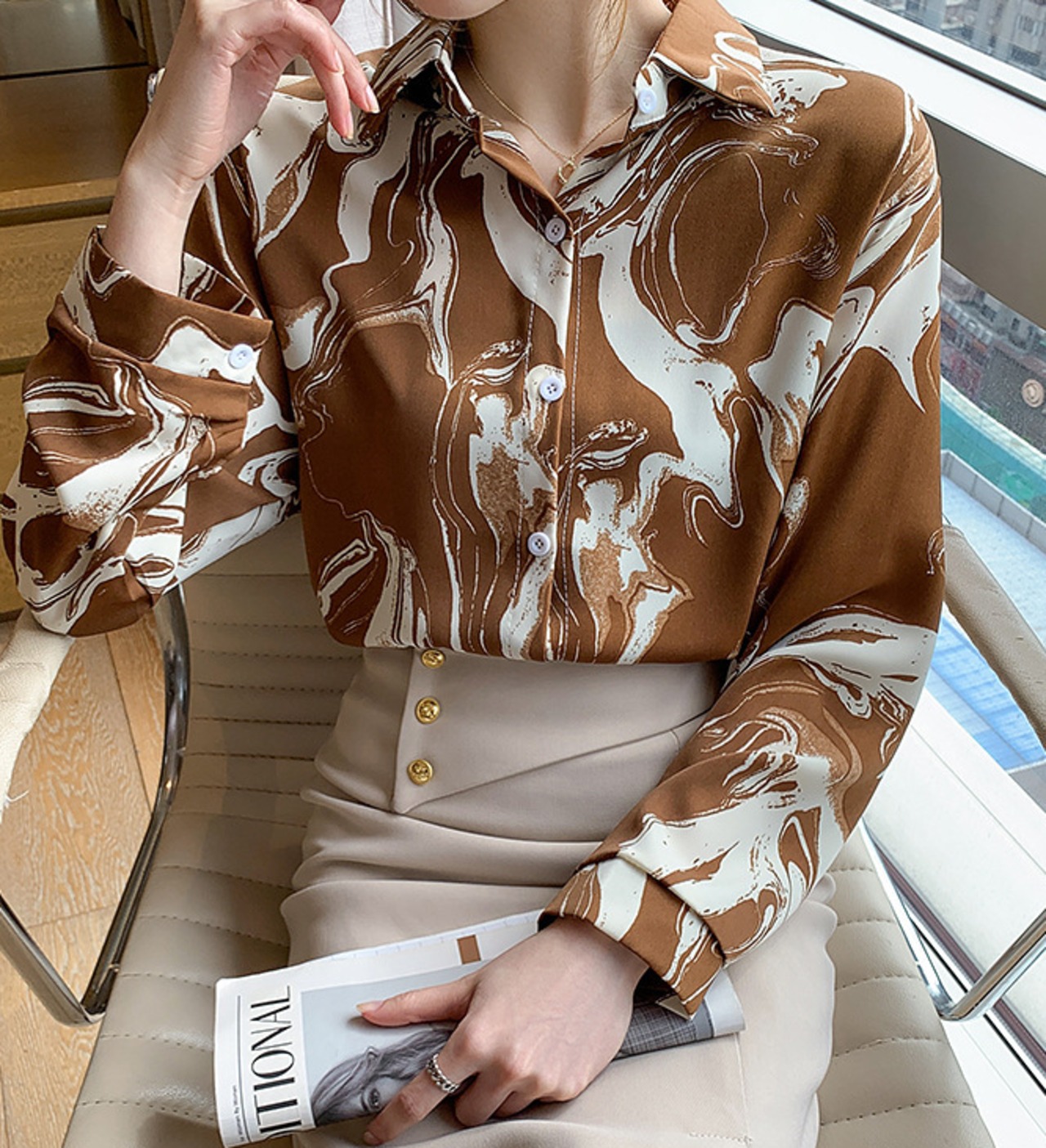 マーブル模様が大人っぽい印象に。トレンド感のあるゆったりとした着こなしが叶うアイテム。