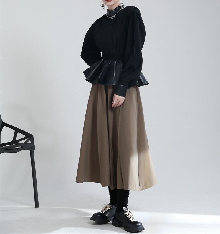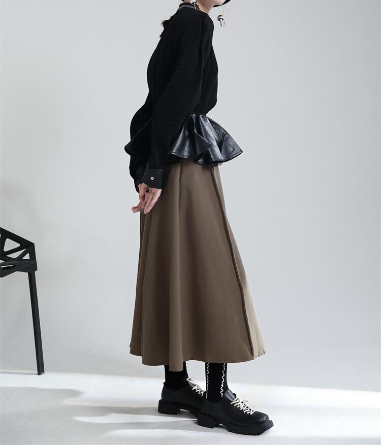 デザインは個性的ですが、無地でシンプルな為、着回しがしやすく、ハイウエストデザインだから脚長効果でスタイルアップが狙えるアイテムです!
