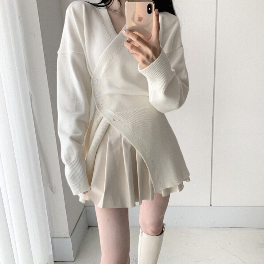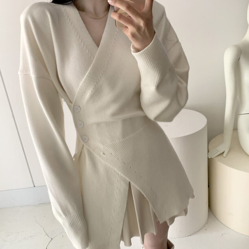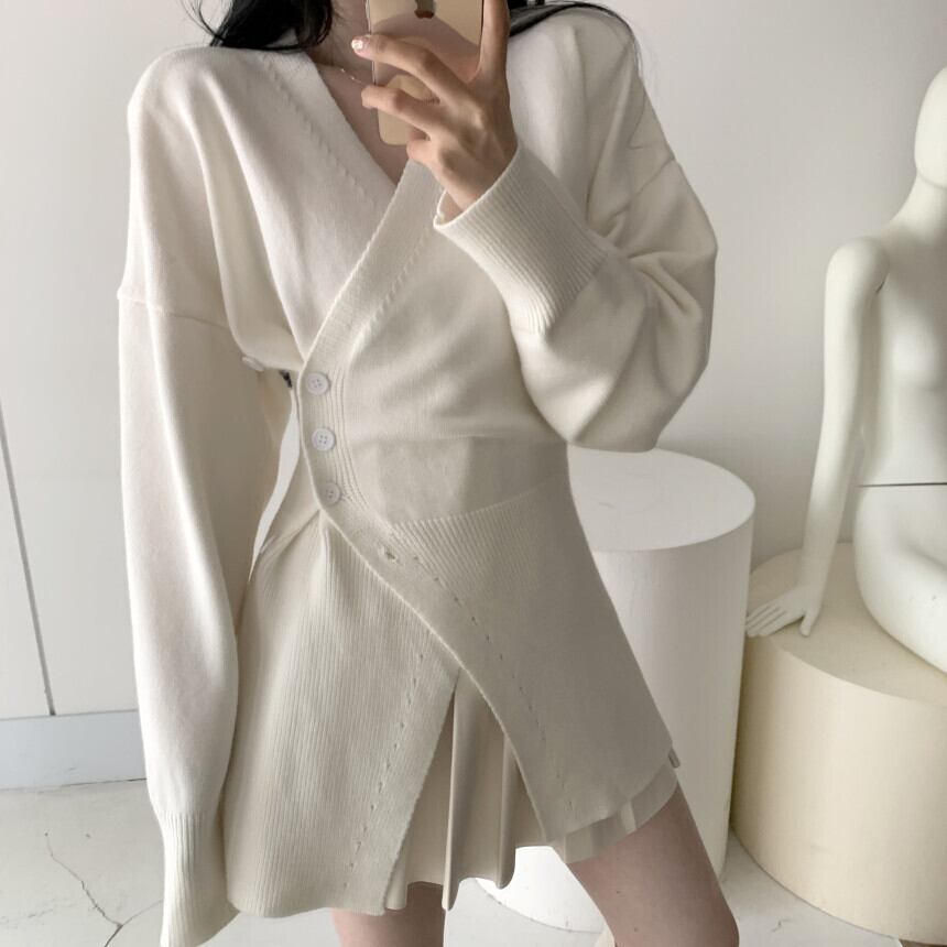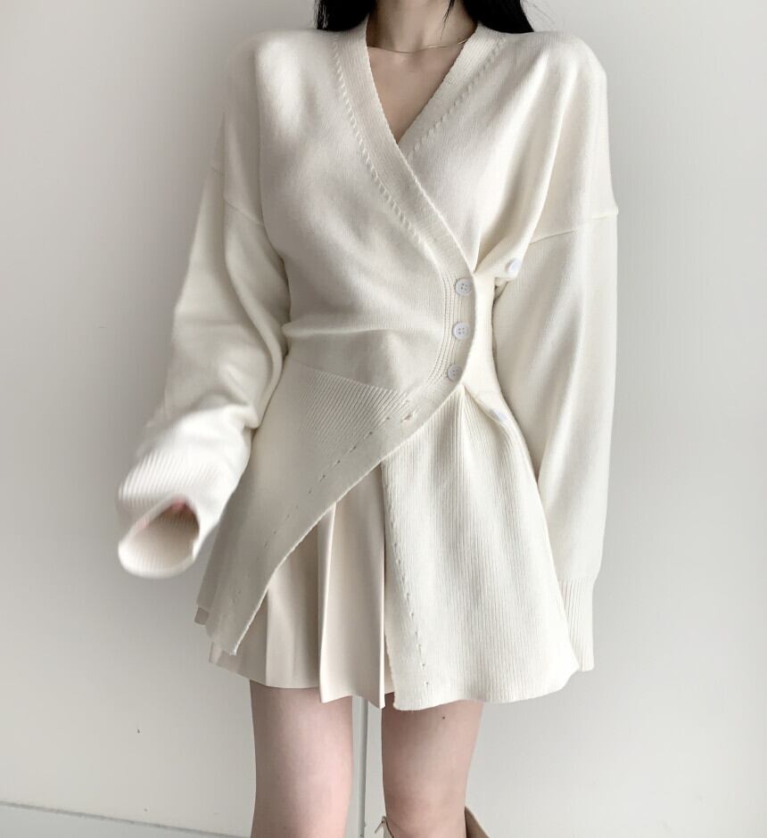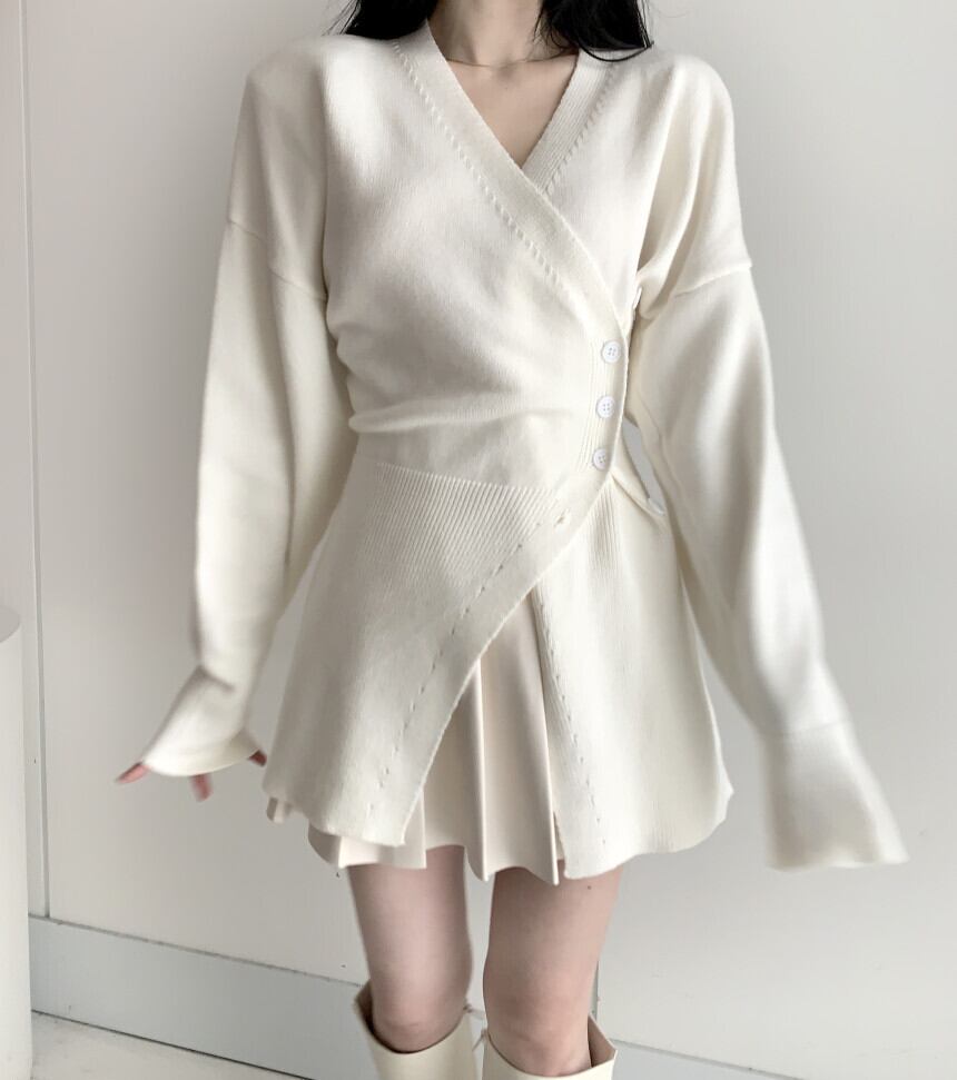 トップス ニットソー セーター カーディガン 白トップス 袖あり 長袖 ボリューム袖 ドロップショルダー Vネック ニット かわいい 大人可愛い きれいめ シンプル カジュアル 大人 上品 おしゃれ お洒落 かっこいい レトロ 大人女子 こなれ感 ラフ マニッシュ キュート ガーリー ルーズ 個性的 クール モード系 セクシー エレガント モダン 主役級 存在感 抜け感 無地 秋 冬 10代 20代 30代 40代 レディース 女性用 ママ オフィス OL 通勤 学生 通学 デート お出かけ 公園デビュー