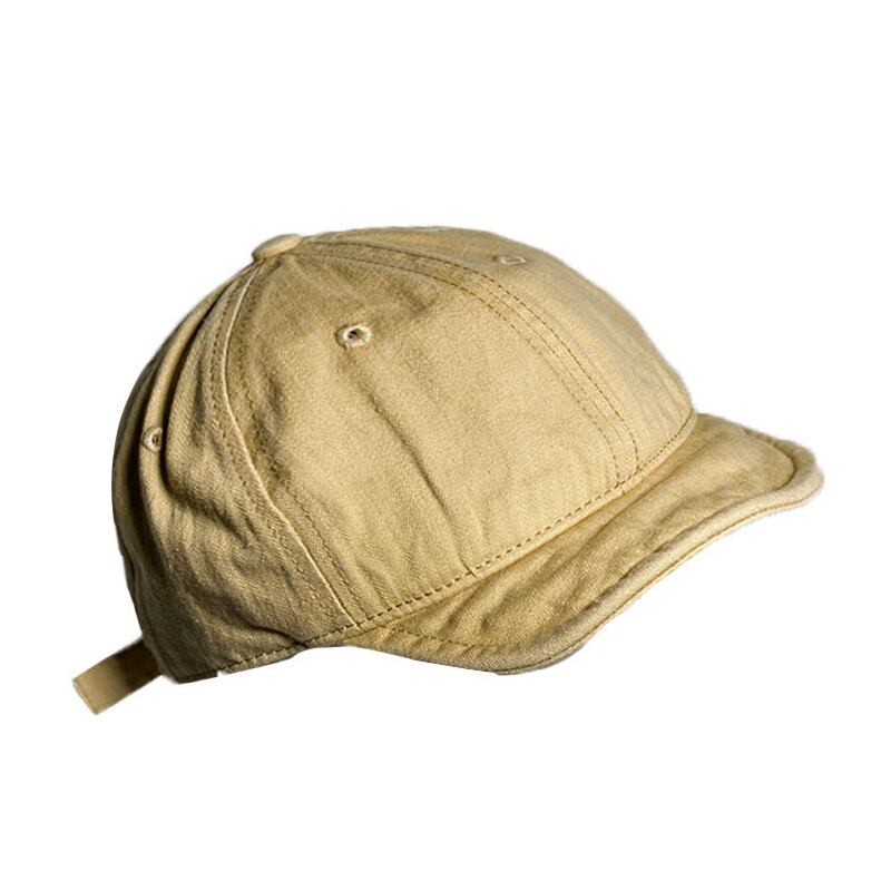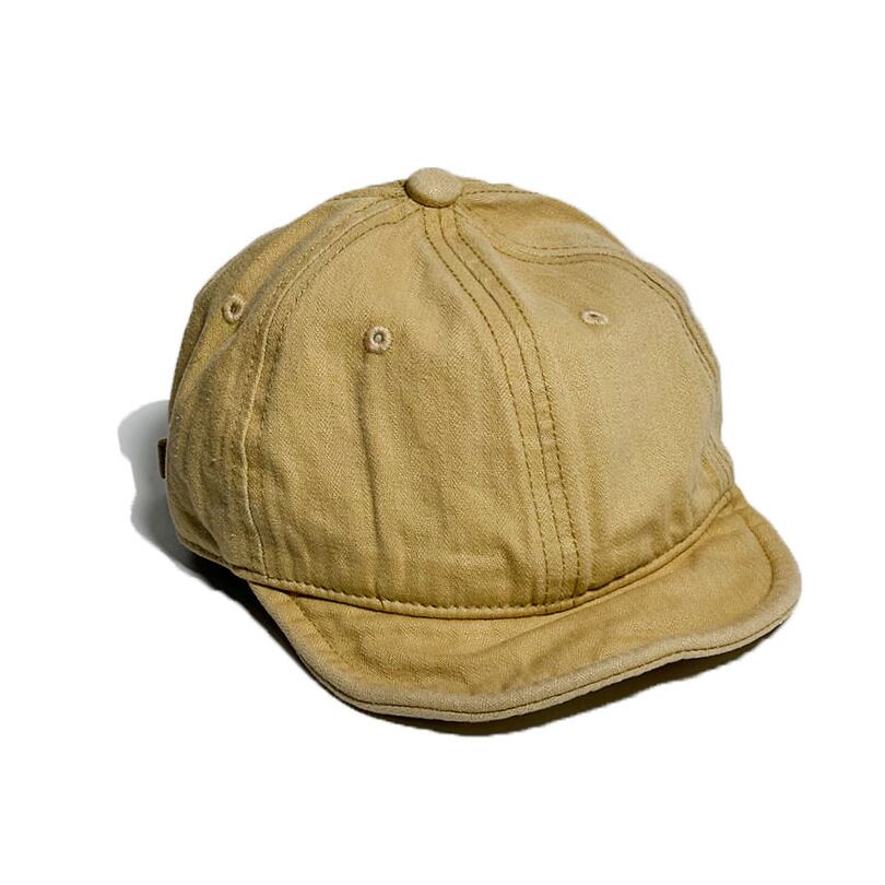 ユーズド加工されたつばの短いオールドスタイルのキャップです。