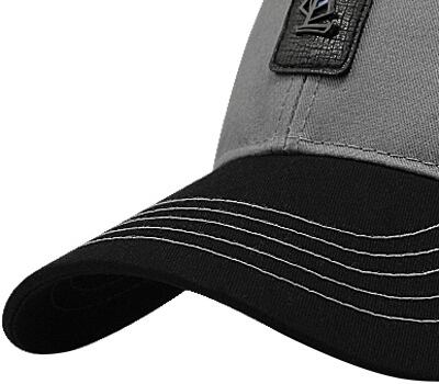 オーソドックスな形のベースボールキャップに革製のワッペンがワンポイトになっていて、落ち着いたデザインながらしっかりとお洒落にも気を使った帽子です。