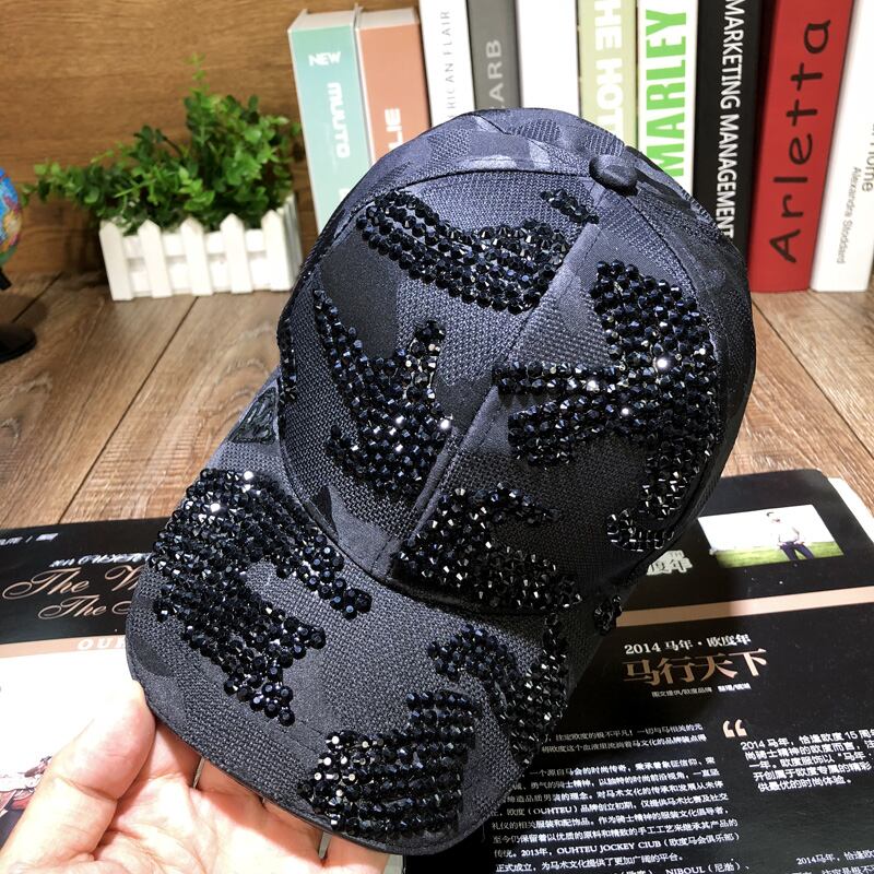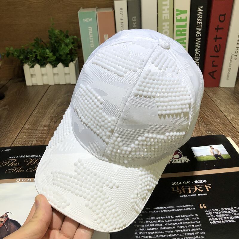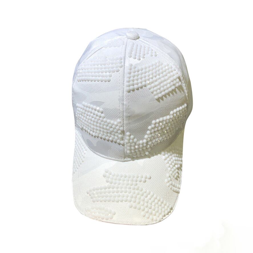 オーソドックスなベースボールキャップに複数のスタッズを付けたユニークなデザインの帽子です。