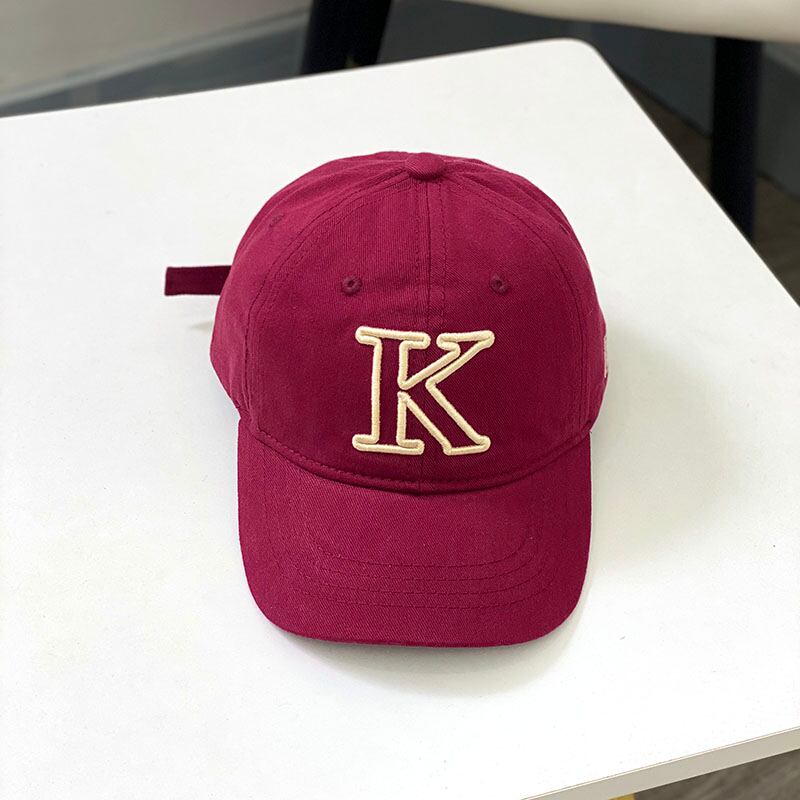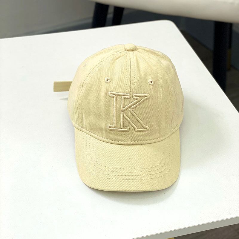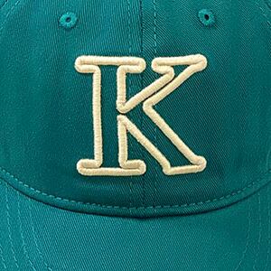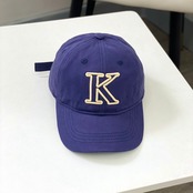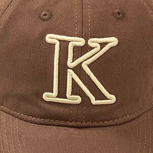 シンプルな形のベースボールキャップに大きく【K】と刺繍が入っており、シンプルながらインパクトもあります。