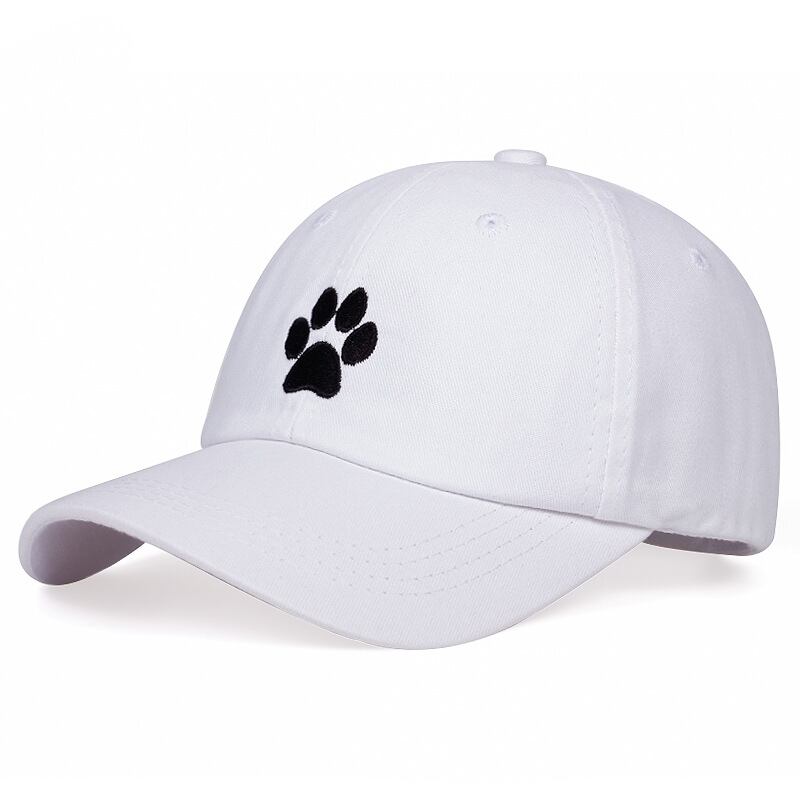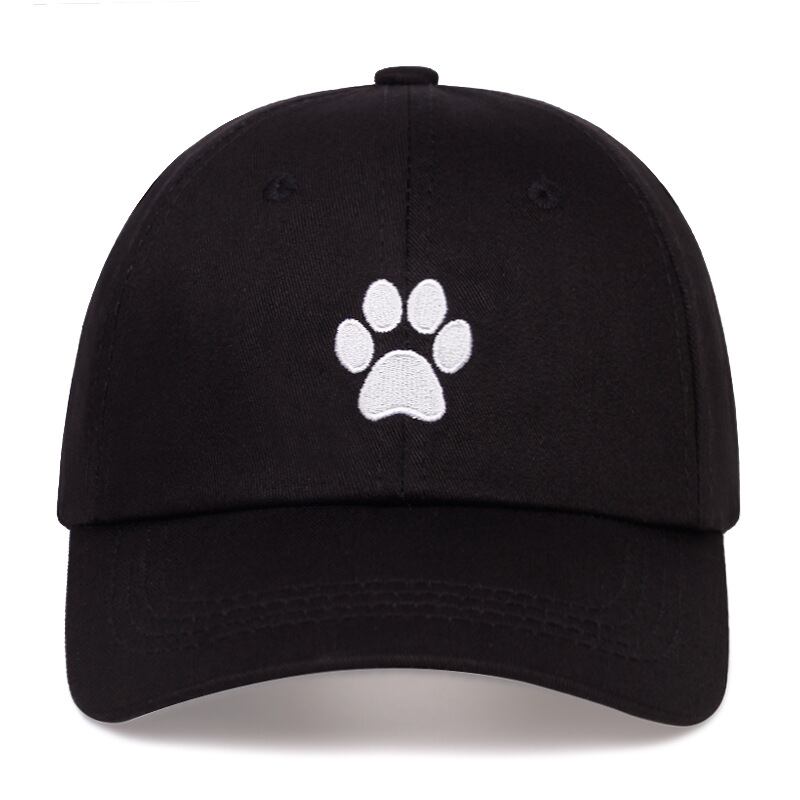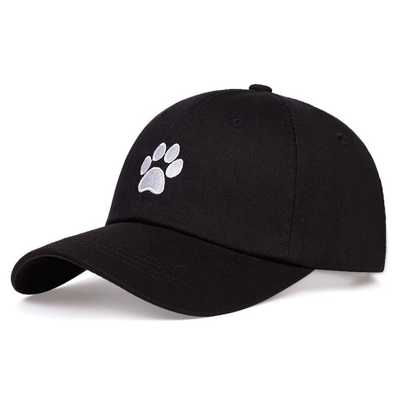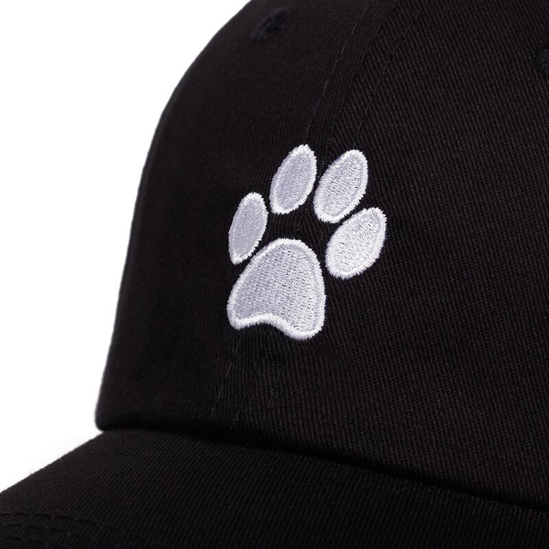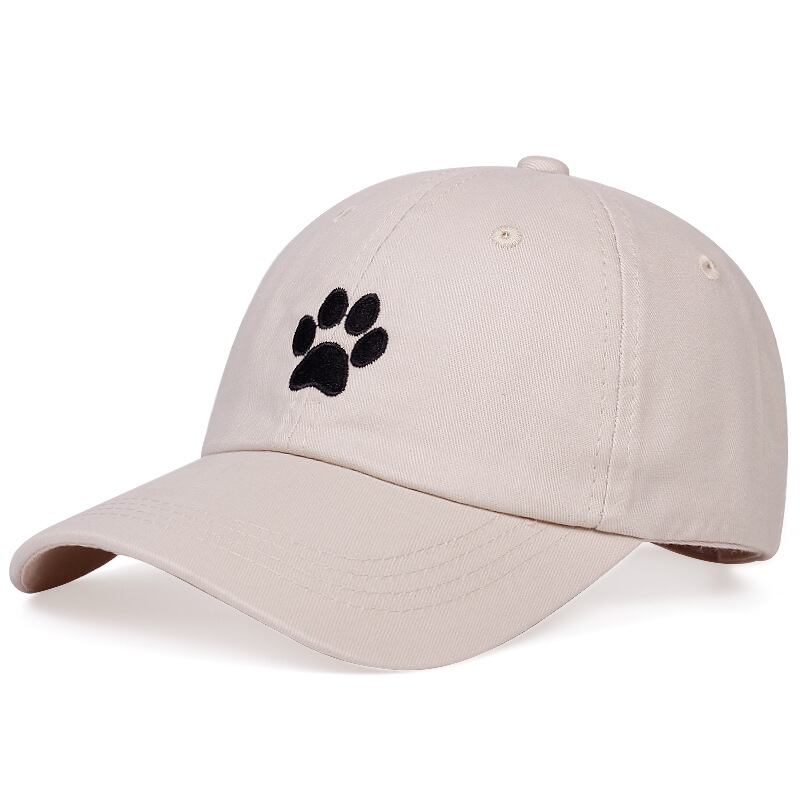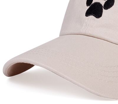 オーソドックスな形のベースボールキャップの前面に足跡の刺繍をほどこした可愛くておしゃれな帽子です。