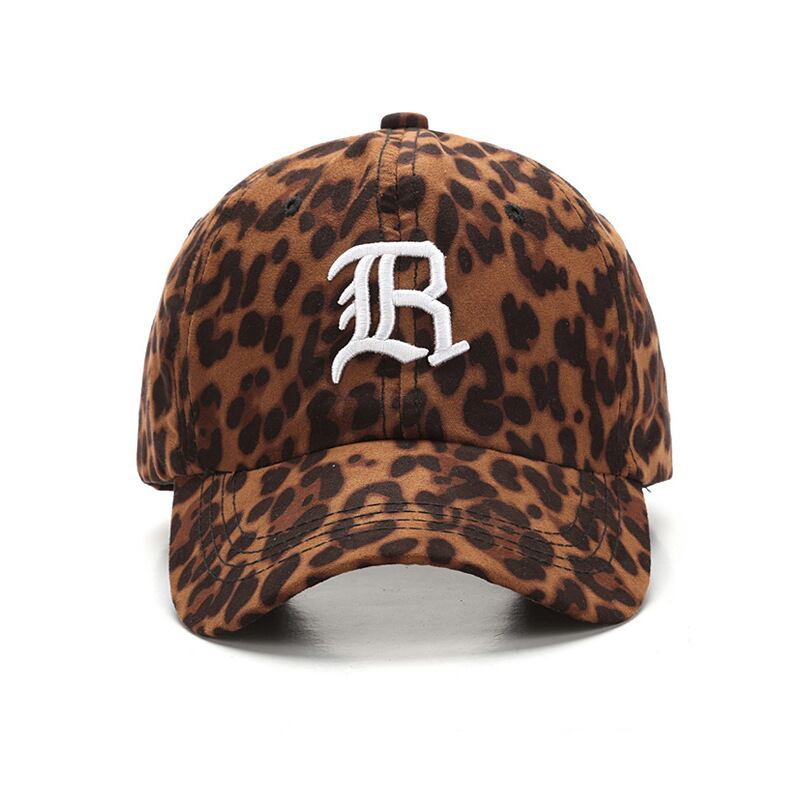 ヒョウ柄のおしゃれな柄にワンポイントの刺繍が施されたのキャップです。