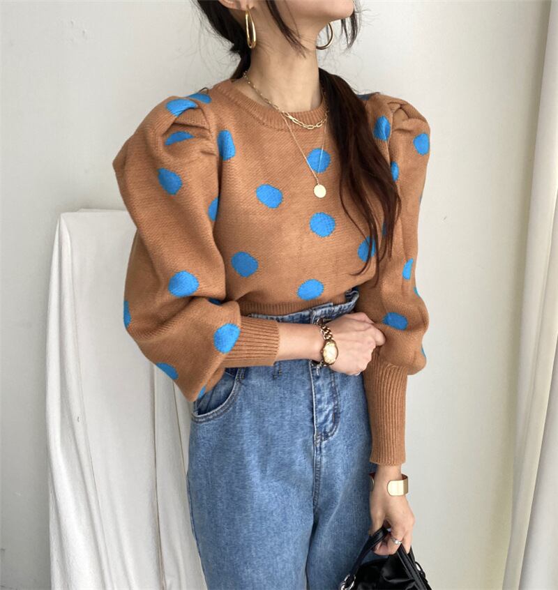 トップス 上着 人気 おすすめ おしゃれ お洒落 激安 安い 送料無料 プチプラ パーカー フーディー スウェット トレーナー スウェット ニット セーター アラン ニット フィッシャーマン ニット 長袖 ロング ラウンドネック 丸首 バンドカラー 柄 水玉 ドット柄 コットン 綿 アクリル 韓国 可愛い かわいい カジュアル 大人 上品 冬 秋 レディース 女性用 20代 30代 フリーサイズ FREE 黒 ブラック 青 ブルー カーキ 桃色 ピンク