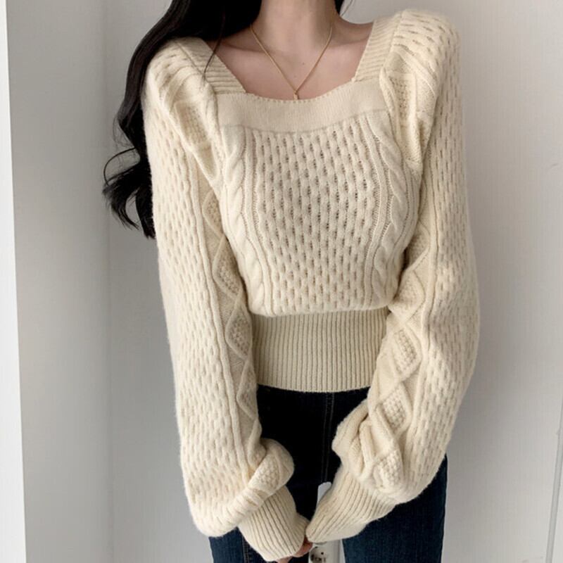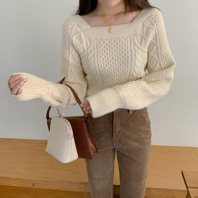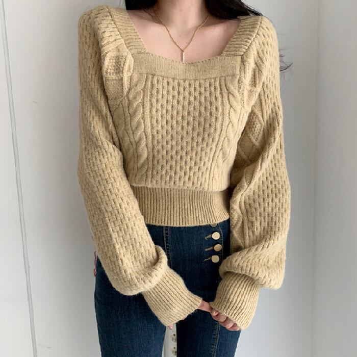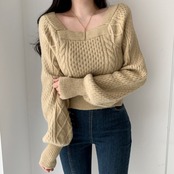 ■季節を問わず、春夏秋冬一年中着られる、通気性に富んだ柔らか素材のスクエアネックニットセーターです。