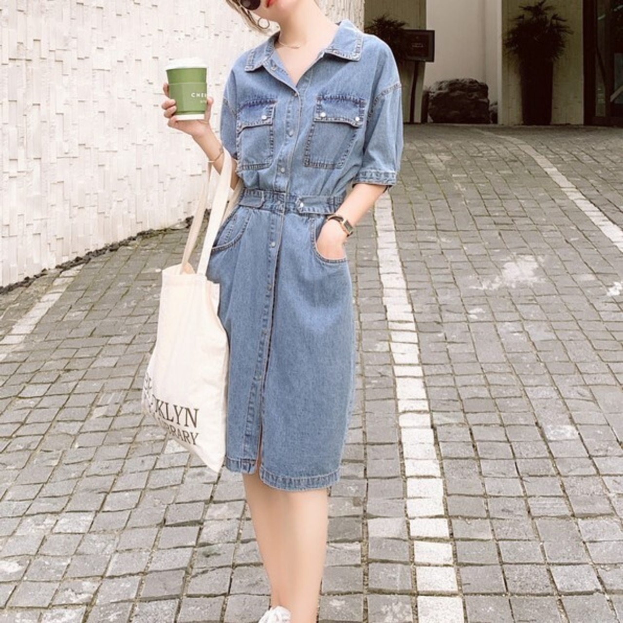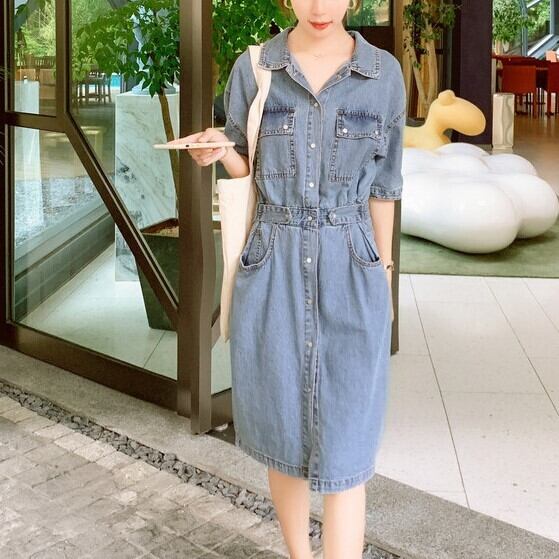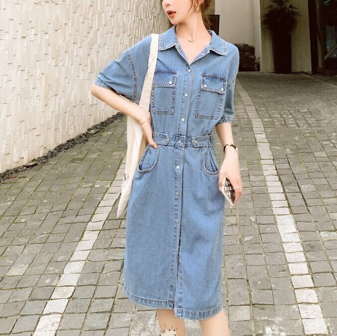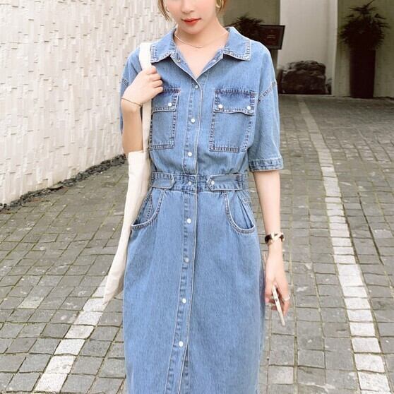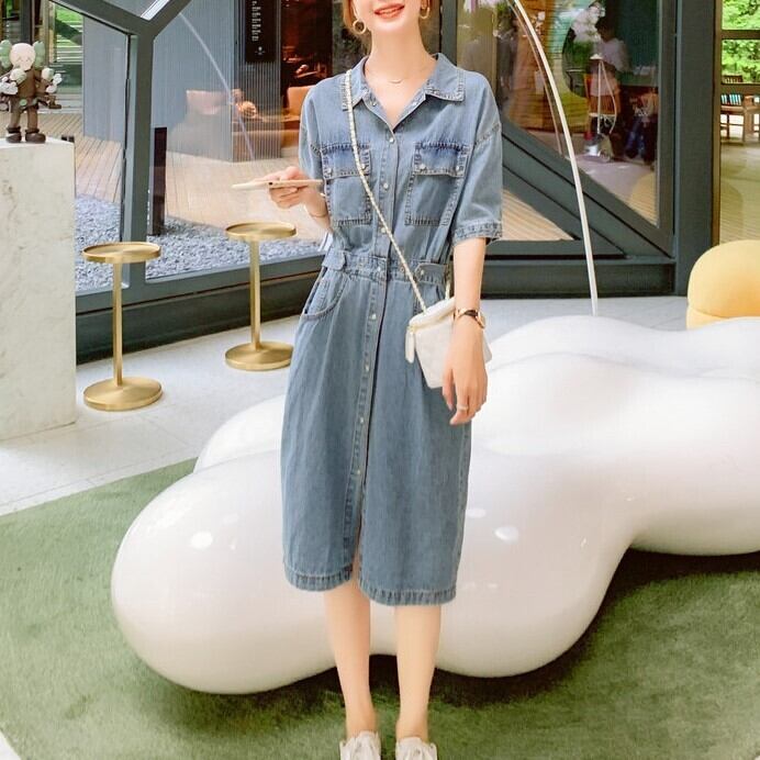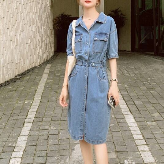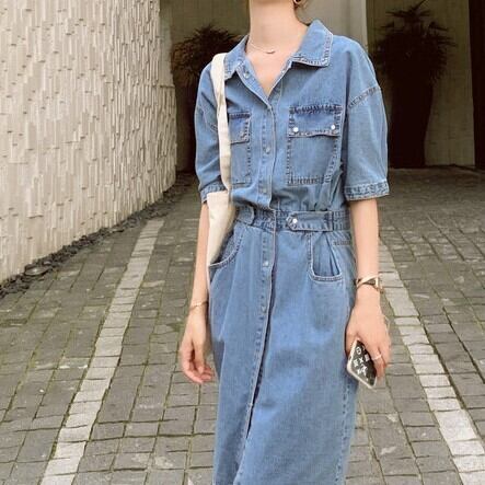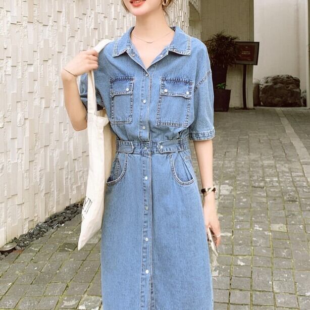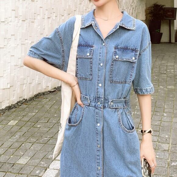 ワンピース ミモレ丈 半袖 5分丈 デニムワンピ ウエストマーク シャツワンピ Aライン サイドベルト ポケット かわいい 大人可愛い きれいめ シンプル カジュアル 大人 上品 おしゃれ お洒落 かっこいい 大人可愛い 大人女子 こなれ感 ラフ ラブリー キュート ガーリー ルーズ モード系 10代 20代 30代 華奢見え レディース 着回し 普段使い 重ね着 韓国系 スタイルアップ 海 プール 脚長 オルチャン ファッション コーデ 体系カバー 流行 インスタ映え