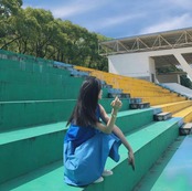 爽やかな2色のブルーが使われているアシンメトリーのワンピースです。