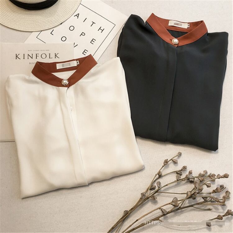 トップス バックボタン 長袖 ブラウス シャツ スタンドカラー フライフロント バイカラー パールボタン 無地とろみ感 ゆったり 人気 おすすめ おしゃれ お洒落 激安 送料無料 可愛い かわいい 韓国 かっこいい カジュアル 大人 上品 きれいめ こなれ感 おしゃれ 大人可愛い 大人女子 モード系 オフィス ビジネス OL 通勤 デート お出かけ 女子会 レディース 女性用 10代 20代 30代 40代 ママ 着回し 普段使い 重ね着 オルチャン ファッション 楽ちん モテ ホワイト ネイビー