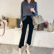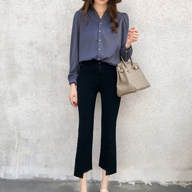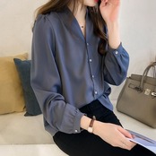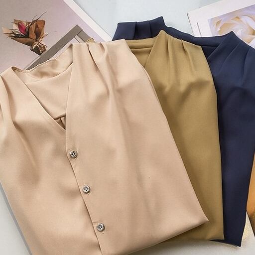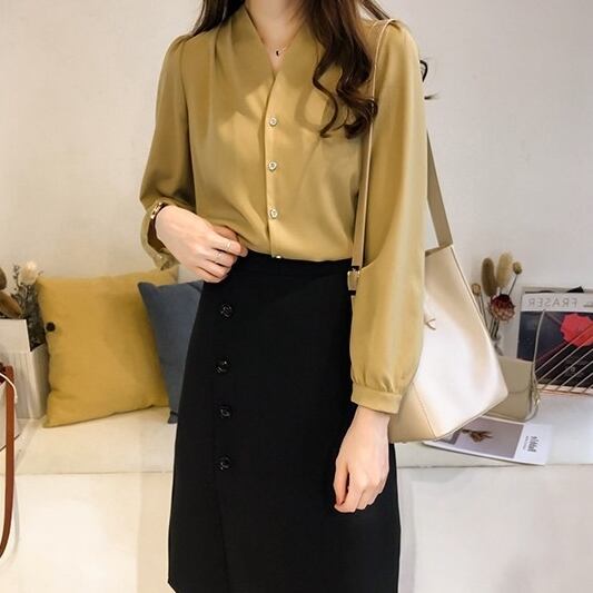 トップス Vネック シャツ カシュクール ブラウス ポケット ゆったり 長袖 七分丈 メタルボタン 人気 おすすめ おしゃれ お洒落 激安 安い 送料無料 プチプラ 可愛い かわいい 韓国 かっこいい カジュアル 大人 上品 きれいめ おしゃれ 大人可愛い 大人女子 モード系 オフィス ビジネス OL 通勤 デート お出かけ 女子会 レディース 女性用 20代 30代 ママ 着回し 普段使い 重ね着 オルチャン ファッション 楽ちん モテ 無地 イエロー アプリコット ブルー