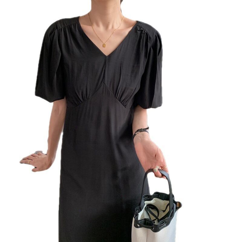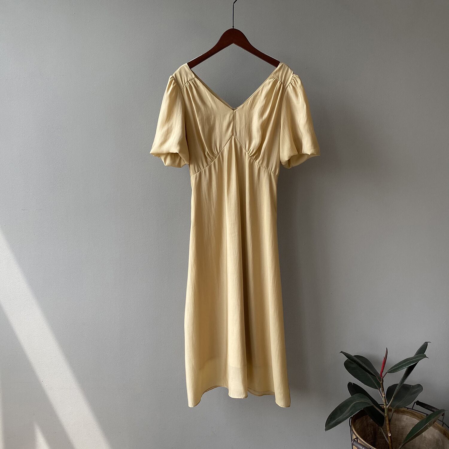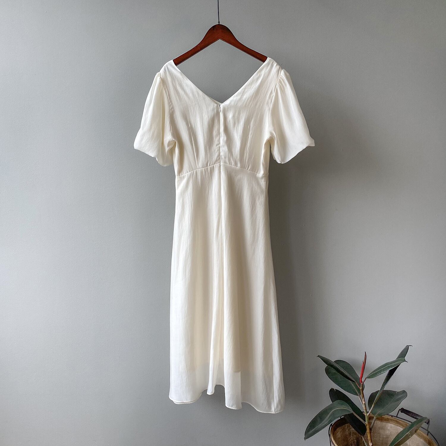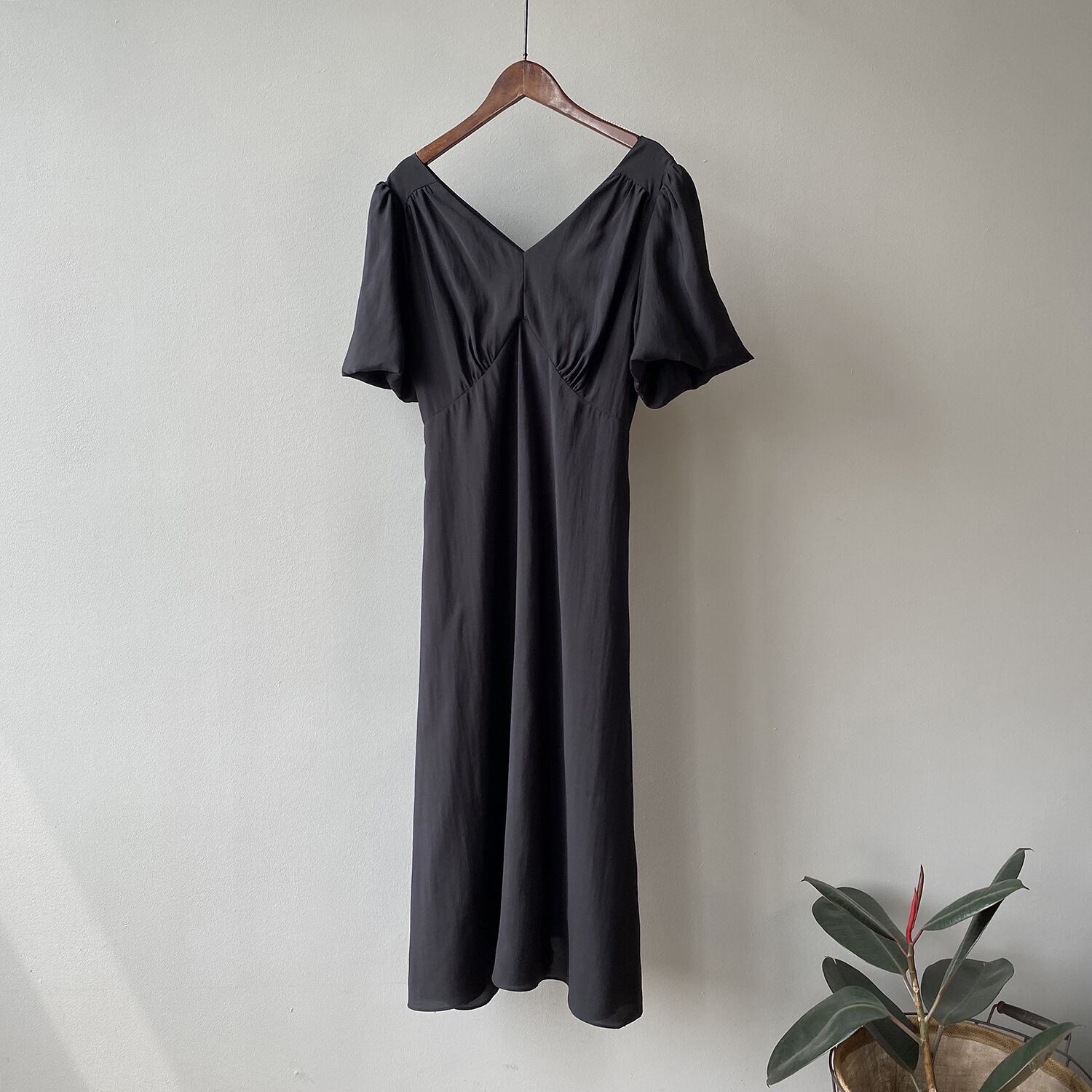 ふんわり大きめのパフスリーブがポイントのワンピース。