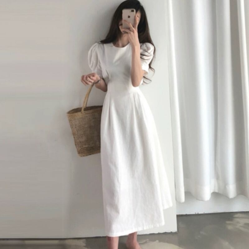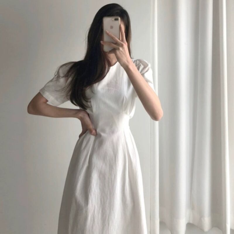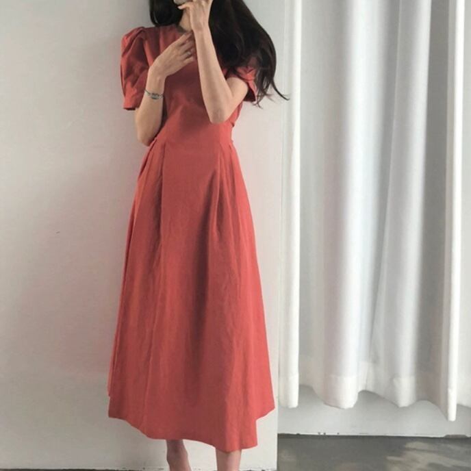 ワンピース 上着 人気 おすすめ おしゃれ お洒落 激安 安い 送料無料 プチプラ 半袖 膝下 ハイウエスト くびれ ラウンドネック 丸首 無地 可愛い かわいい 韓国 シンプル カジュアル きれいめ 春 スプリング サマー 夏 レディース 女性用 20代 30代 S M L XL 2XL 白 ホワイト 赤 レッド くすみカラー 大人カラー 春カラー デート フェミニン カジュアル スリム バックリボン ナチュラル