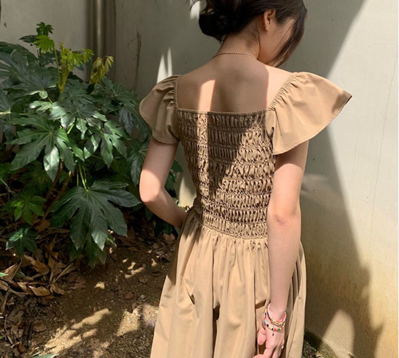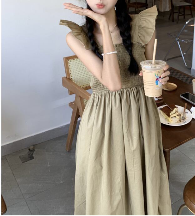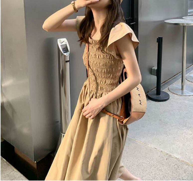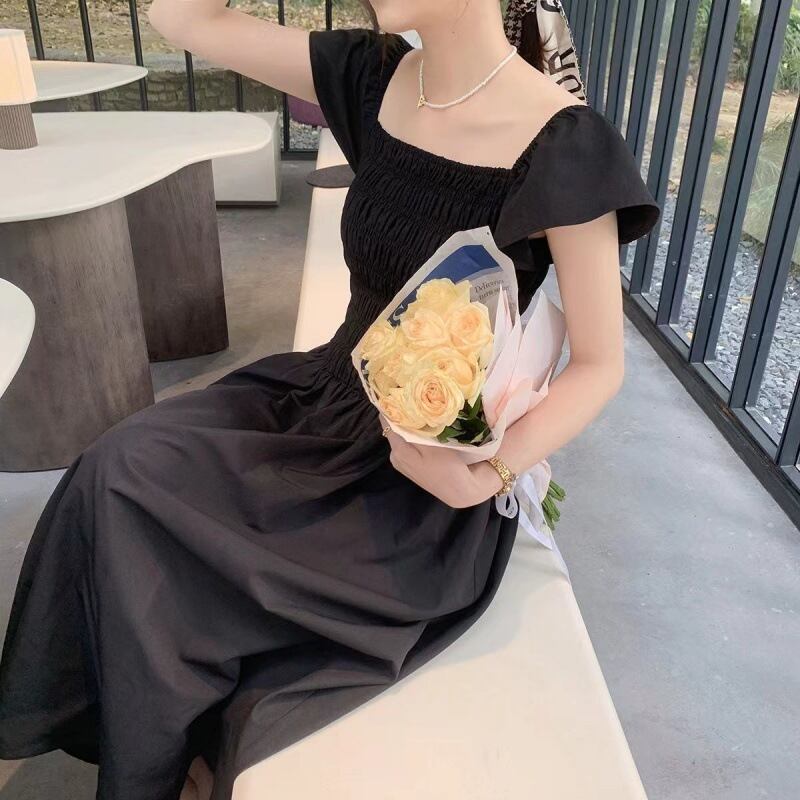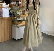ワンピース 上着 人気 おすすめ おしゃれ お洒落 激安 安い 送料無料 プチプラ 半袖 ローウエスト スクエアネック Aライン マキシ 無地 ポリエステル ギャザー フレア フリル ウエスト 切り替え 春 スプリング サマー 夏 アウトドア レディース 女性用 20代 30代 S M L XL 黒 ブラック 緑 グリーン カーキ 大人カラー デート フェミニン ゆったり アウトドア ナチュラル スリム カジュアル