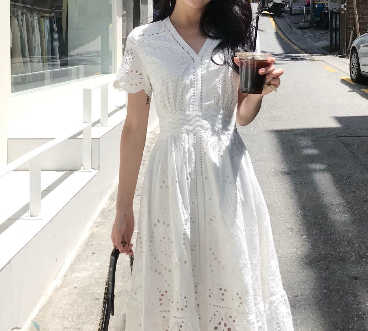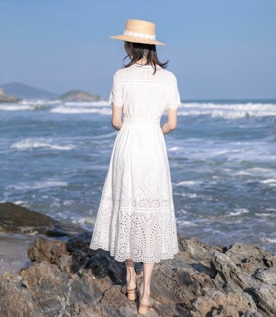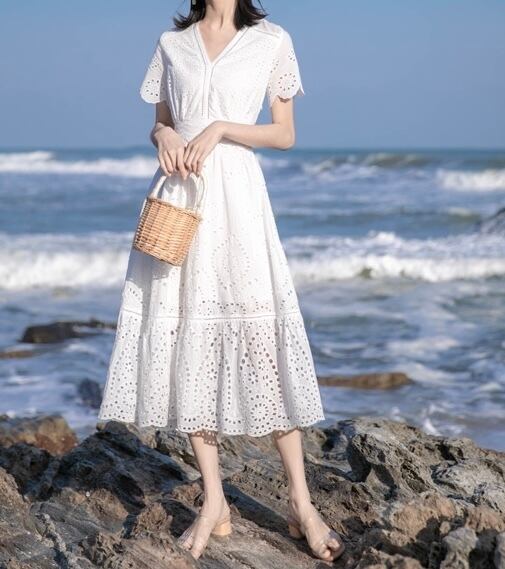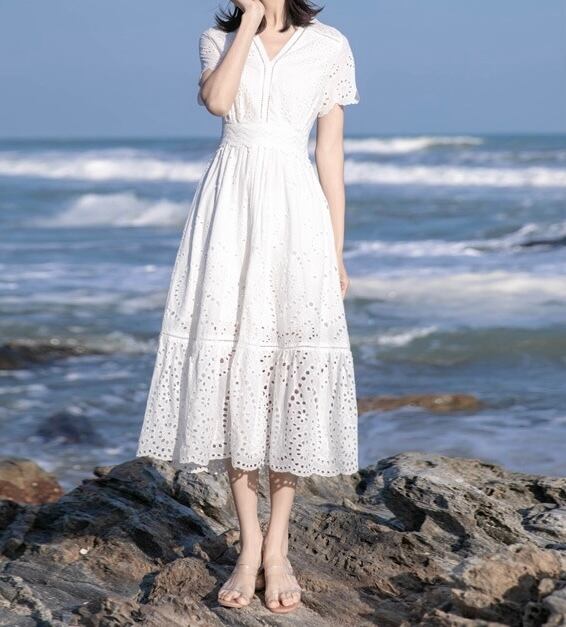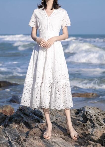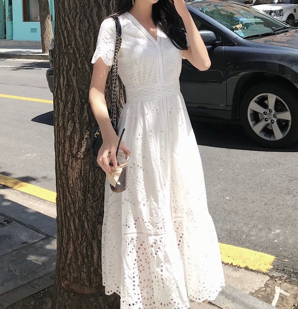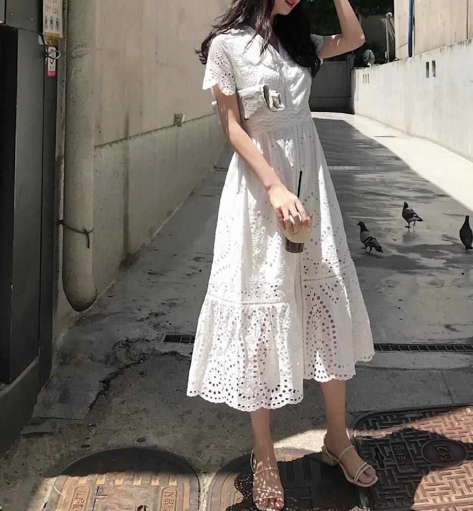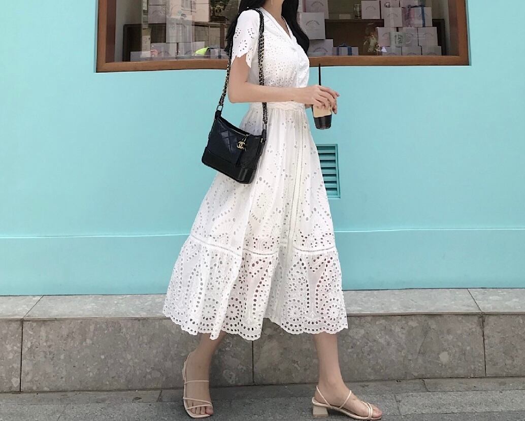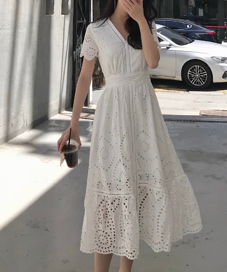 ワンピース ミディアム丈 総レース 半袖 袖あり Vネック ウエストマーク ウエスト切り替え ハイウエスト 脚長効果 スタイルアップ Aライン 透け感 レトロ ホワイト 白 ワントーン ワンカラー 大きいサイズ S M L XL エレガント フェミニン 可愛い かわいい キュート オシャレ おしゃれ お洒落 お出かけ ランチ デート 女子会 普段使い 通勤 旅行 韓国 観光 リゾート ビーチ 海 プール 夏 サマー 春 スプリング レディース 大人女子 きれいめ 綺麗系 20代 30代 アラサー 高校生