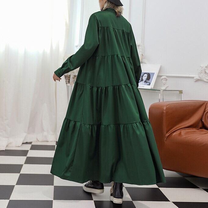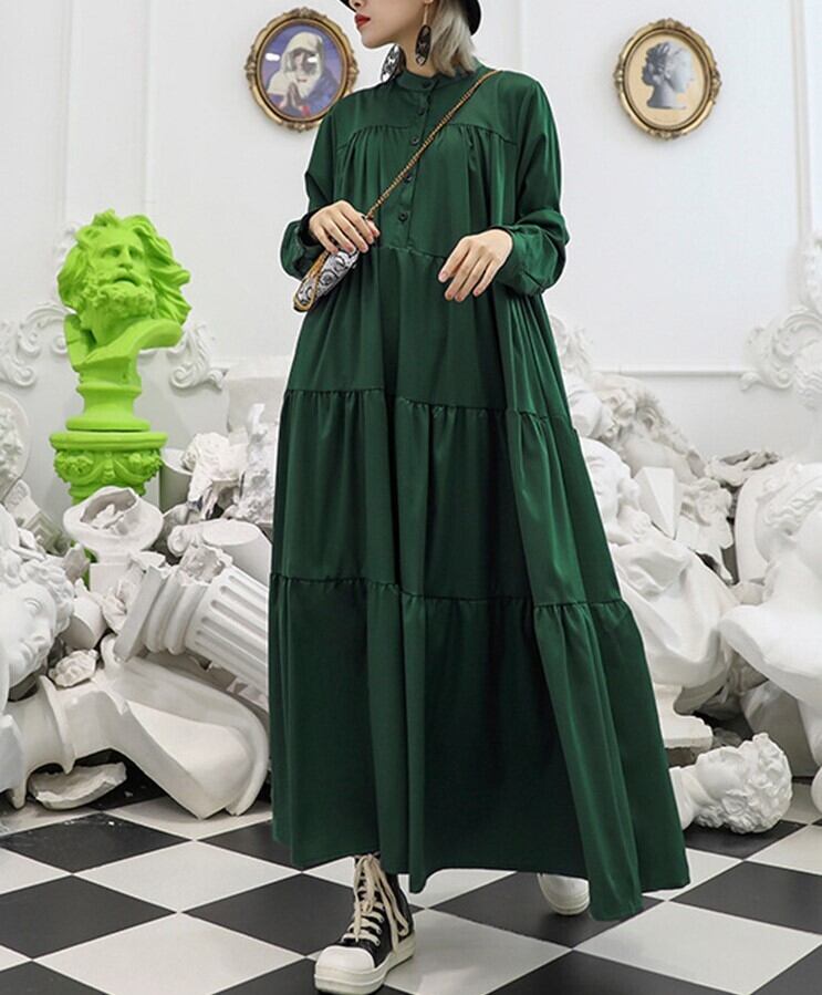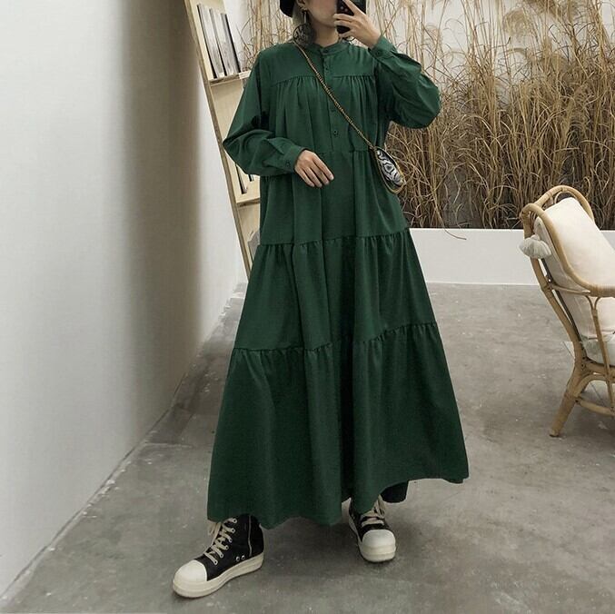 ワンピース ティアード フレア Aライン シャツワンピ スタンドカラー ゆったり 無地 ボリューム ルーズ かわいい 大人可愛い きれいめ シンプル カジュアル 大人 上品 おしゃれ お洒落 かっこいい 大人可愛い 大人女子 こなれ感 ラフ ラブリー キュート ガーリー ルーズ モード系 マタニティ 体型カバー スタイルアップ 20代 30代 40代 レディース 着回し 普段使い 重ね着 韓国系 オルチャン ファッション コーデ 体系カバー 流行 インスタ映え グリーン 緑 ブラック 黒
