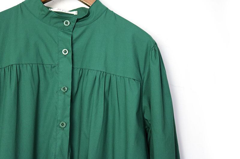 首周りはきちんと感のあるスタンドカラーのシャツデザインで大人っぽい雰囲気に。
