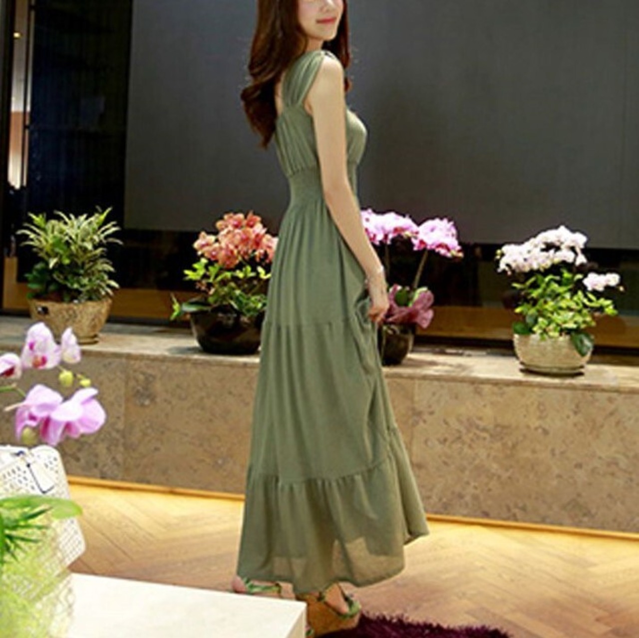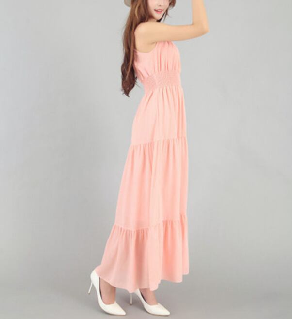 ノースリーブが涼し気なマキシ丈ワンピースです。