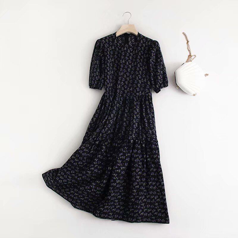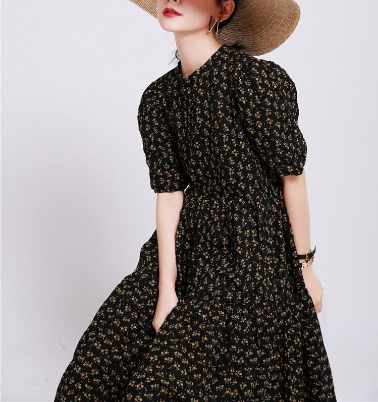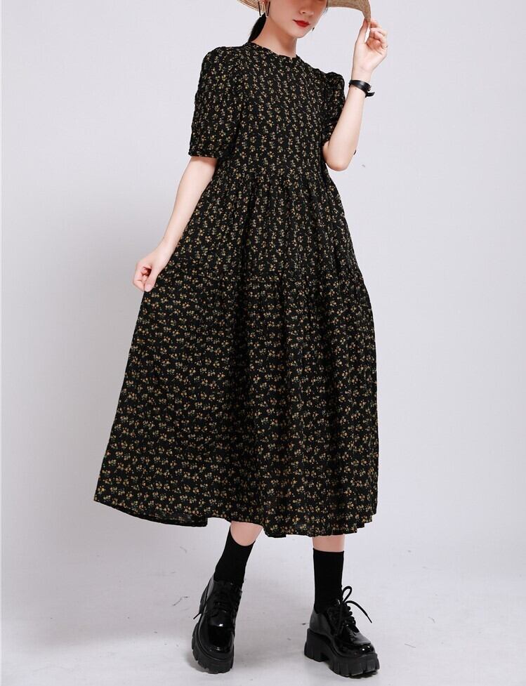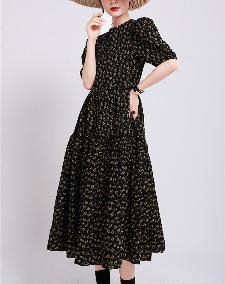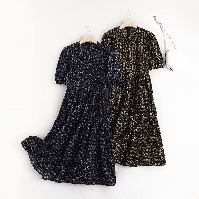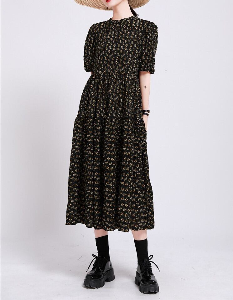 フラワー ティアード ワンピース ミモレ丈 半袖 ハイネック パフスリーブ ラウンドネック ハイウエスト 小花柄 花柄 フローラル かわいい 大人可愛い きれいめ シンプル カジュアル 大人 上品 おしゃれ お洒落 かっこいい 大人可愛い 大人女子 こなれ感 ラフ ラブリー キュート ガーリー ルーズ モード系 10代 20代 レトロ 古着風 ウエストマーク レディース 着回し 普段使い 重ね着 韓国系 オルチャン ファッション コーデ 体系カバー 流行 インスタ映え イエロー パープル 黄 紫