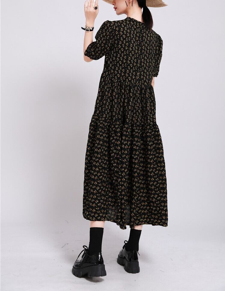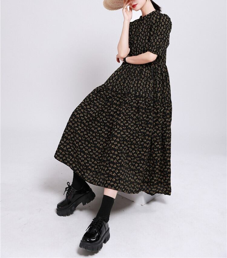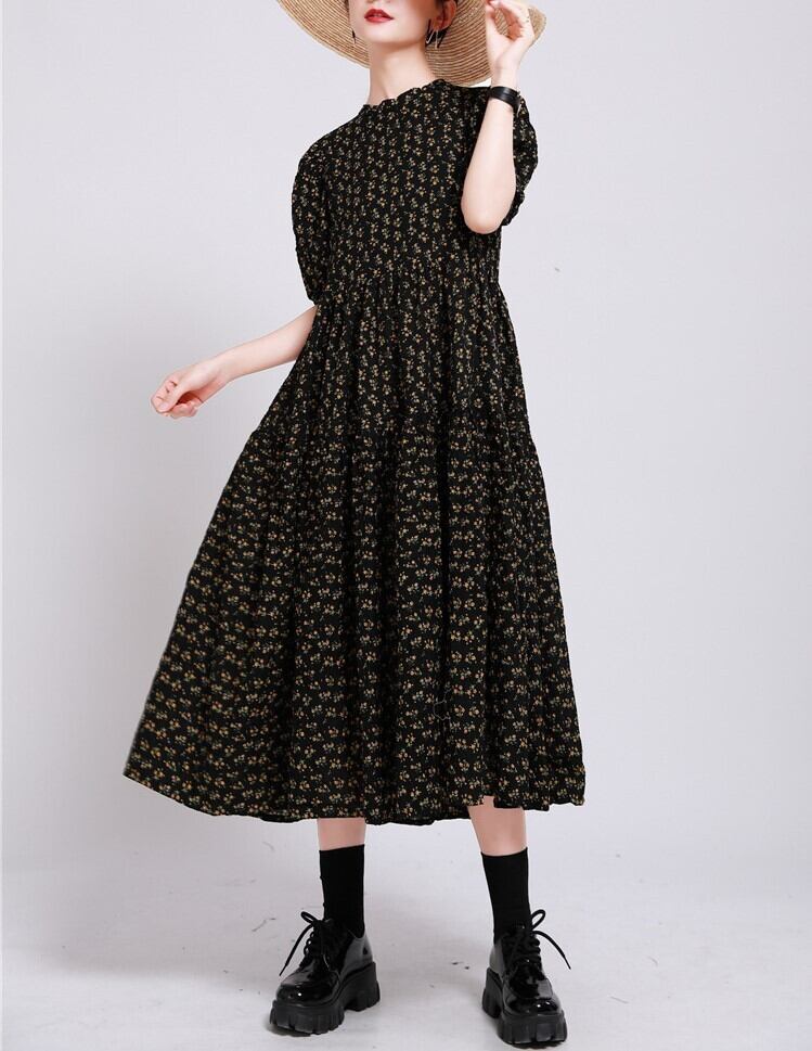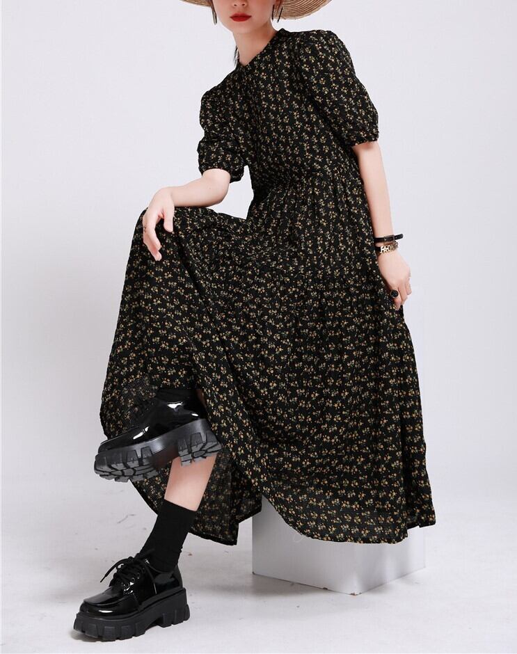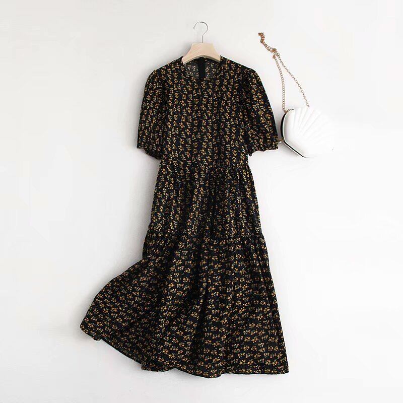 フラワー ティアード ワンピース ミモレ丈 半袖 ハイネック パフスリーブ ラウンドネック ハイウエスト 小花柄 花柄 フローラル かわいい 大人可愛い きれいめ シンプル カジュアル 大人 上品 おしゃれ お洒落 かっこいい 大人可愛い 大人女子 こなれ感 ラフ ラブリー キュート ガーリー ルーズ モード系 10代 20代 レトロ 古着風 ウエストマーク レディース 着回し 普段使い 重ね着 韓国系 オルチャン ファッション コーデ 体系カバー 流行 インスタ映え イエロー パープル 黄 紫