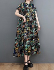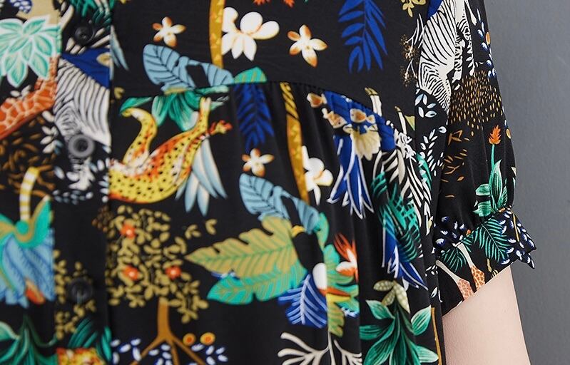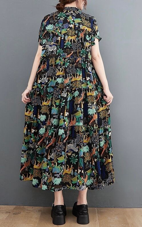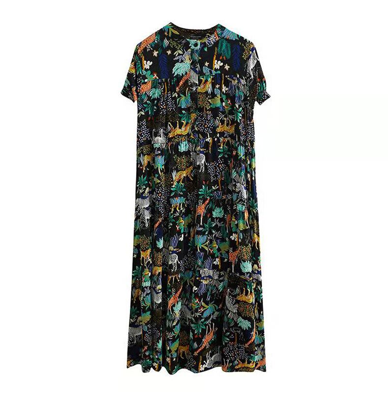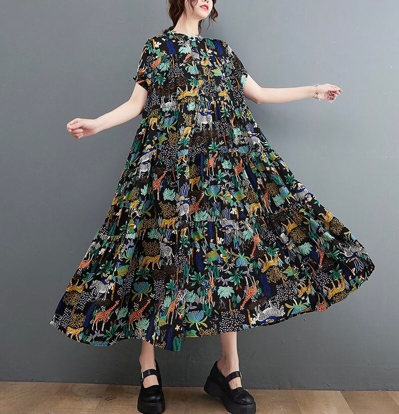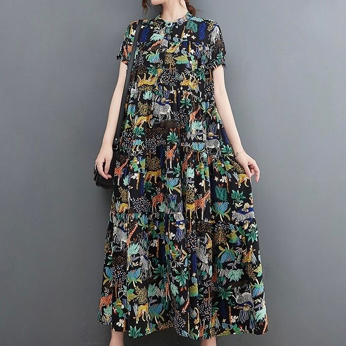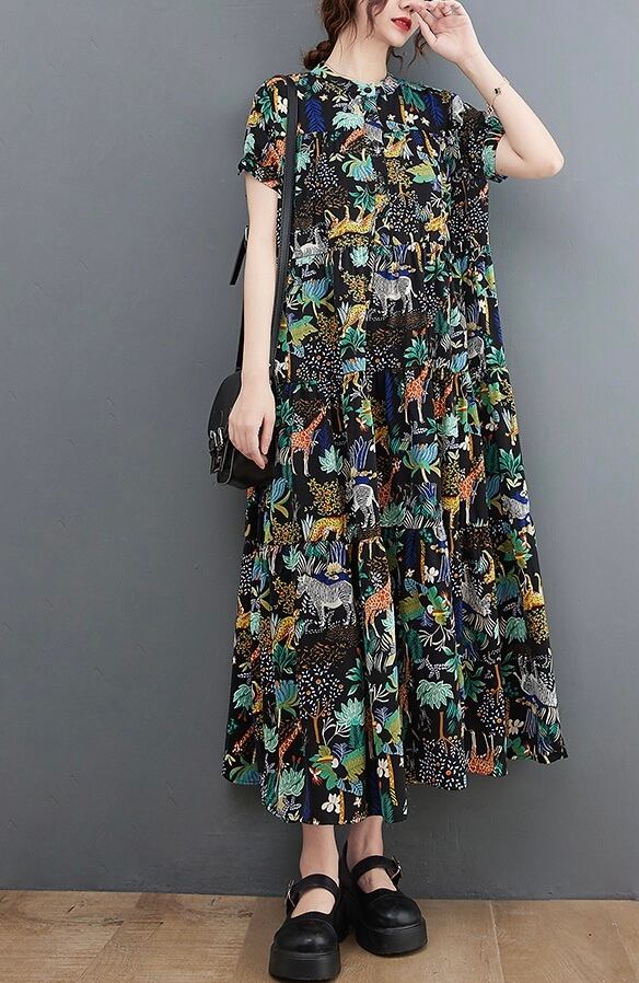 ワンピース ロング丈 マキシ 半袖 袖あり 総柄 アニマル 個性的 派手 ゆったり オーバーサイズ 体型カバー ハイウエスト 脚長効果 スタイルアップ スカート 20代 30代 40代 アラサー アラフォー 夏 サマー ビーチ 海 リゾート プール 旅行 観光 ランチ 通勤 送料込み 送料無料 レディース オシャレ おしゃれ お洒落 かわいい 可愛い マルチカラー カラフル 送料込み 送料無料