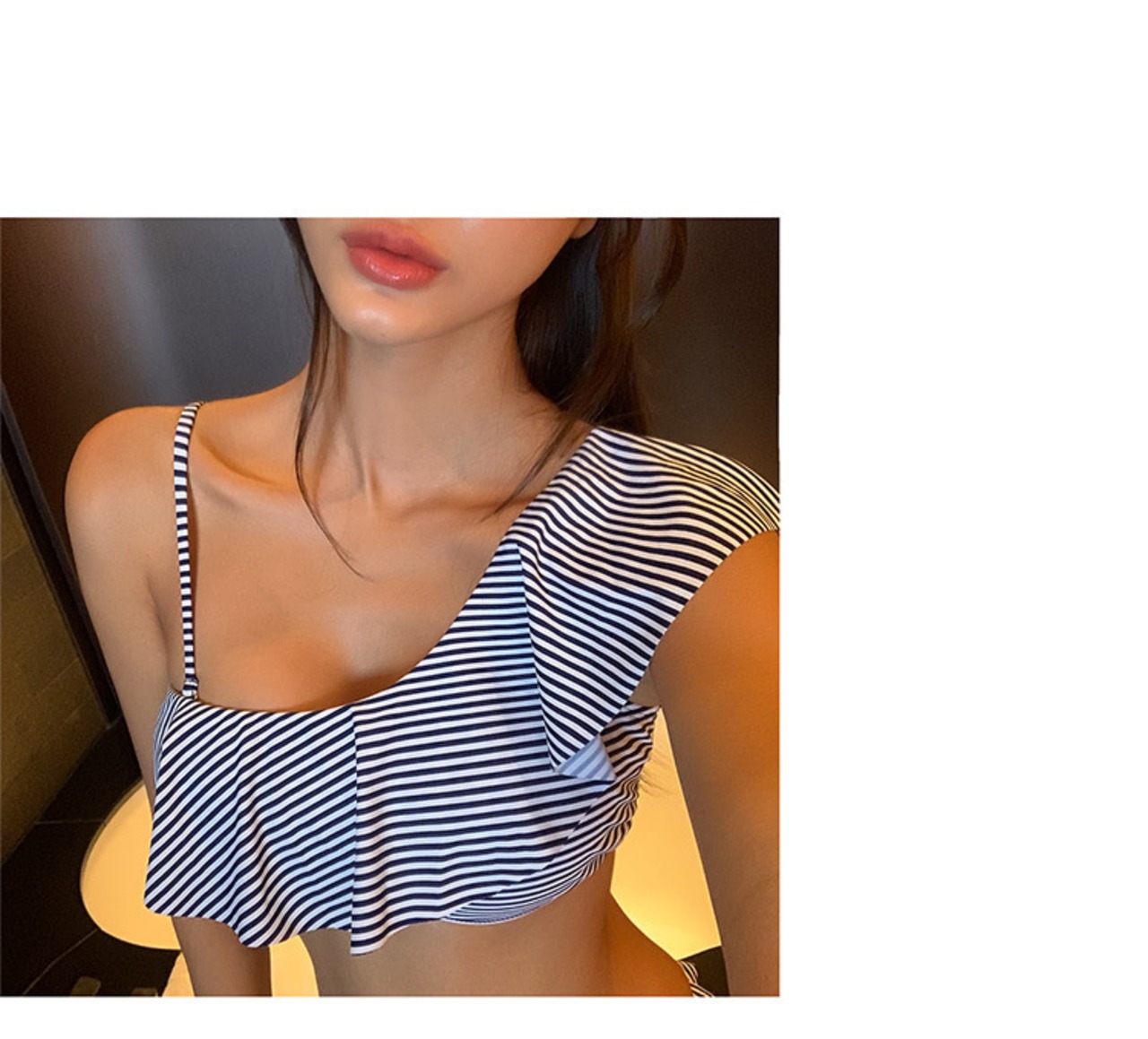 胸元のフレア生地が可愛さ引き出す。